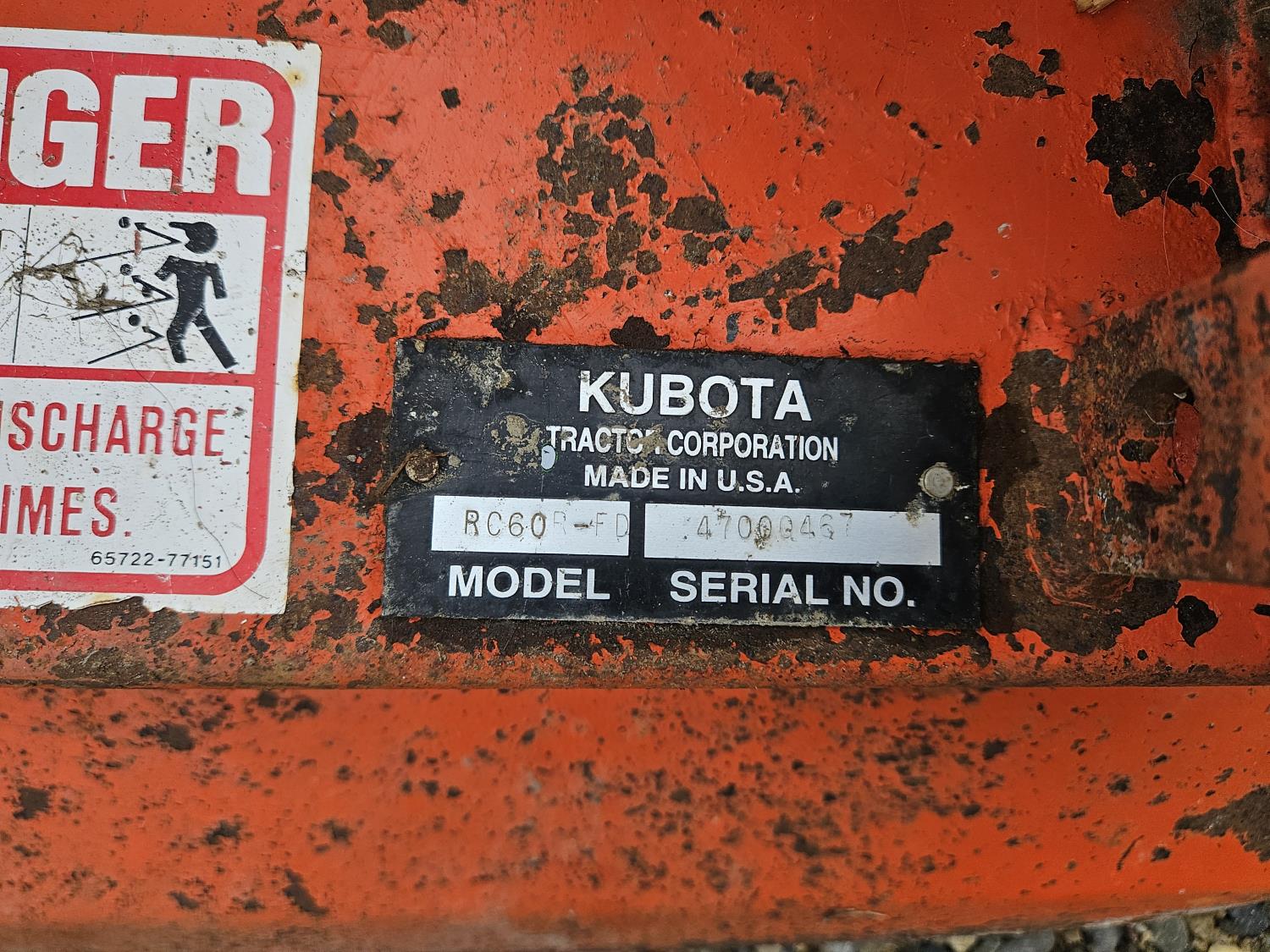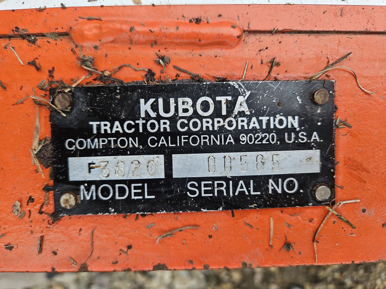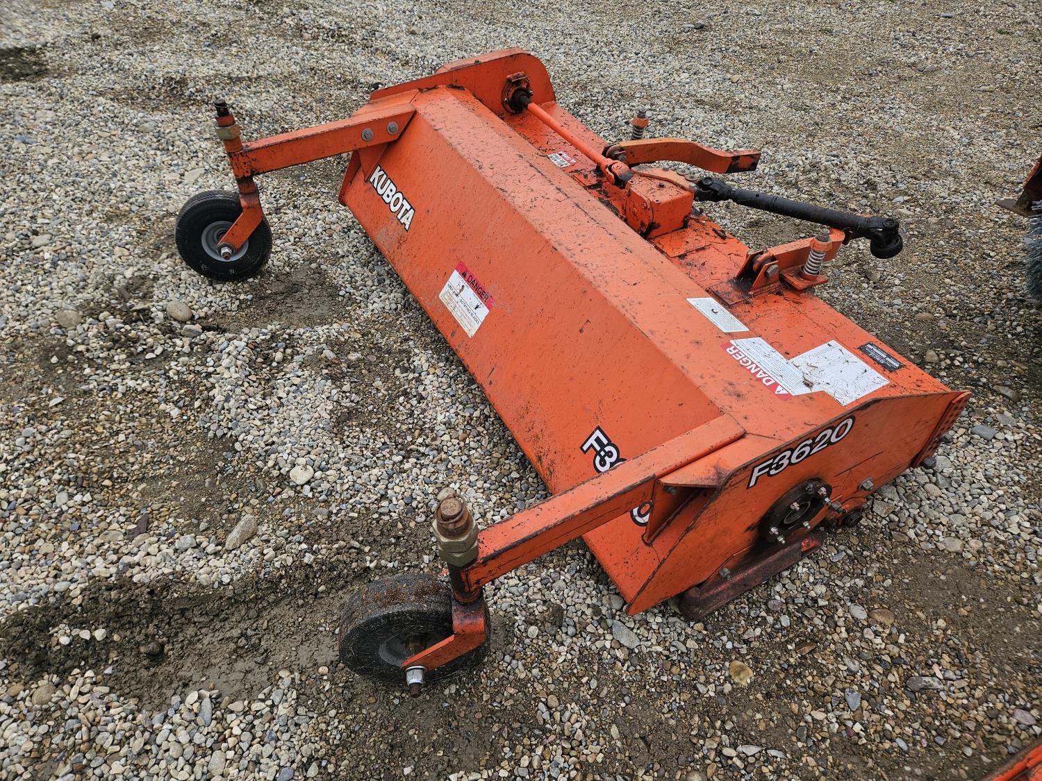 24 HP 3 cylinder Kubota diesel engine, hydrostatic transmission, front mount PTO, 23x10.00-12 front tires, 16x6.50-8 rear tires, Kubota F3219 60 inch power brush, Kubota RG-60 60 inch finishing mower, Kubota F3620 66 inch flail mower