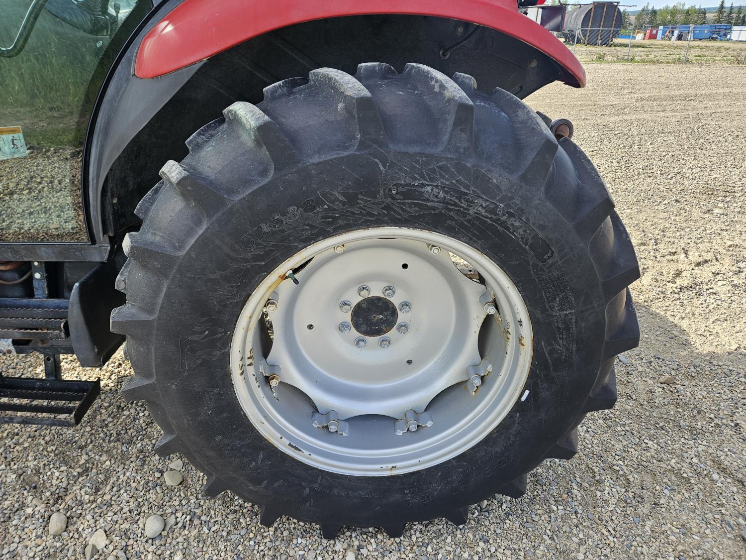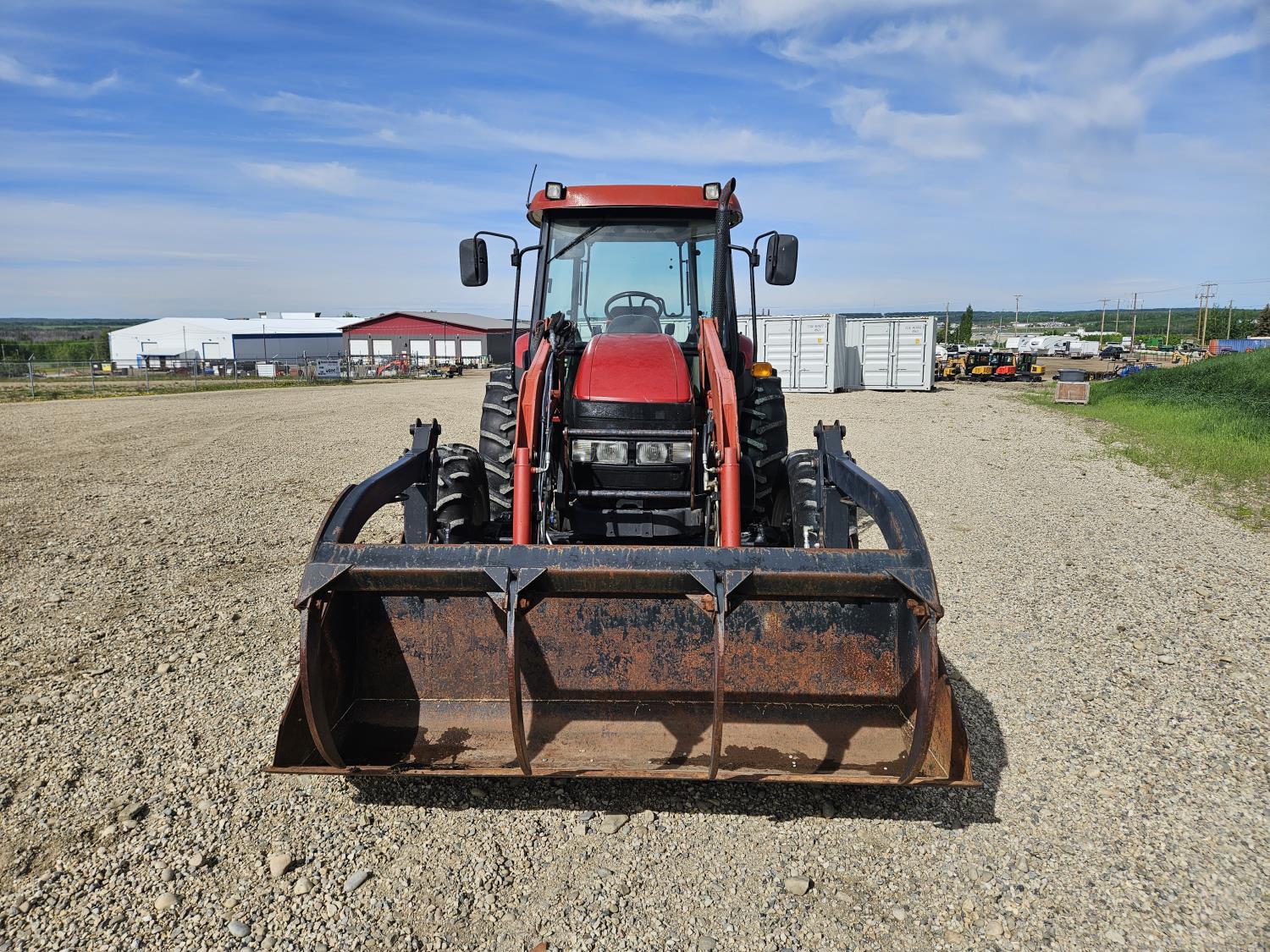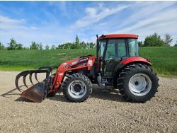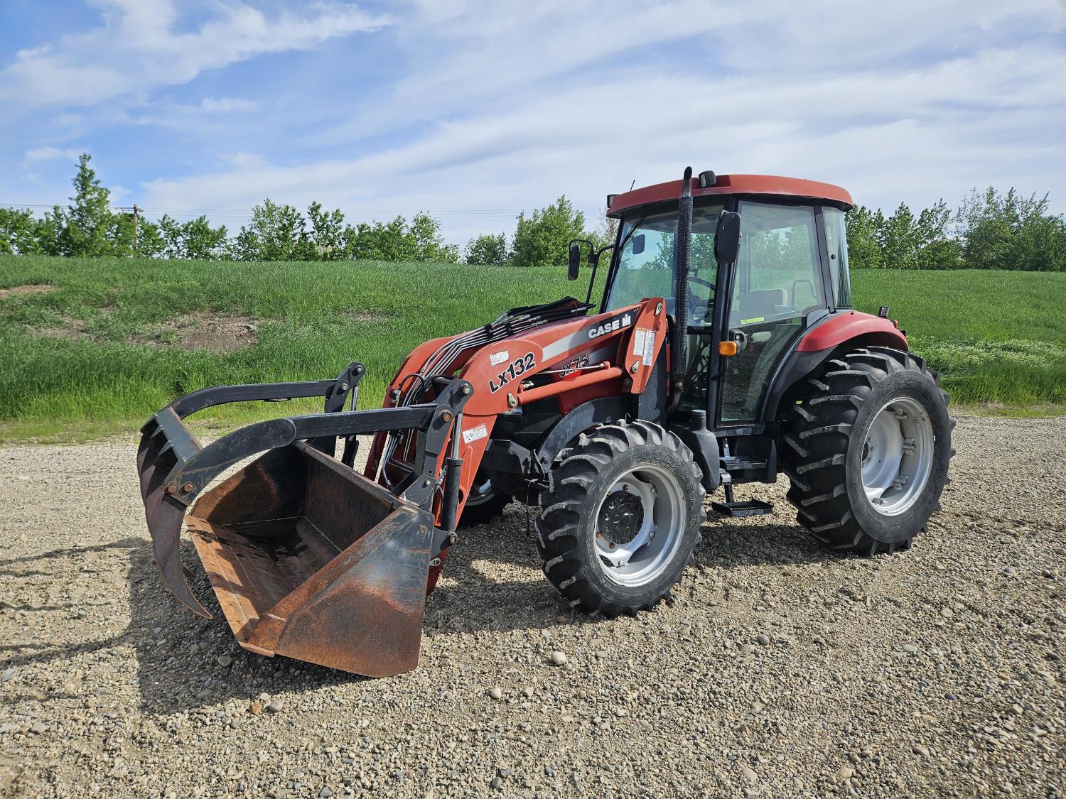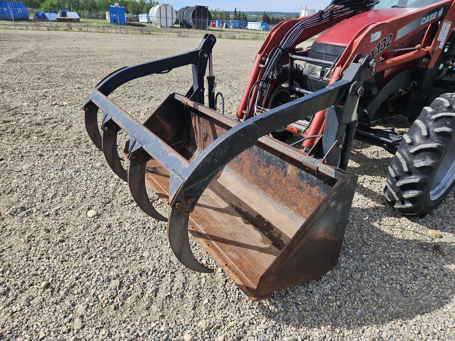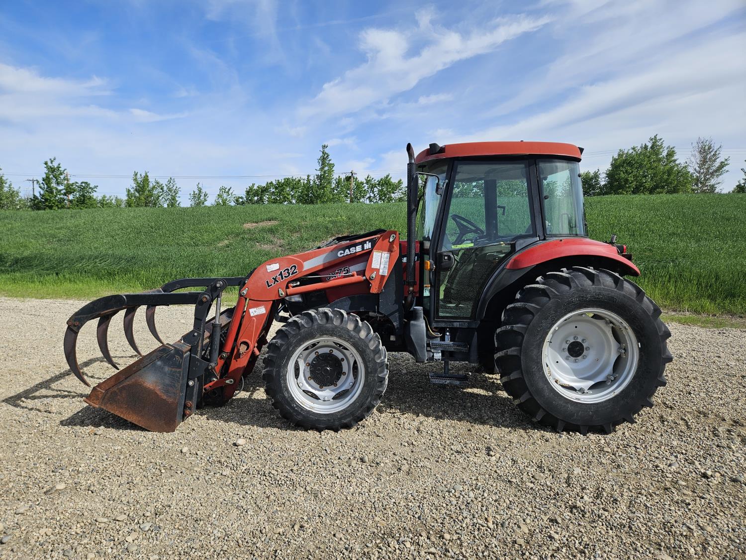 Case LX132 loader, 84 inch bucket, grapple, Iveco 3.3 L 4 cylinder 75 HP, diesel engine, 12 speed manual transmission, cab, shuttle shift, joystick, A/C, radio, 540 PTO, 3 point hitch, 3 rear hydraulic outlets, 11.8-24 front tires, 16.9-30 rear tires