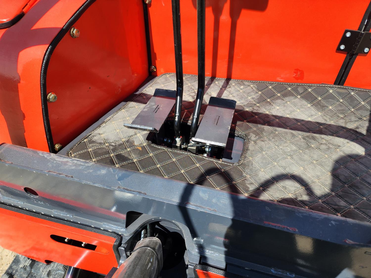 Open station, Kubota diesel engine, canopy, 15 inch dig bucket, hydraulic thumb, 31 inch stick, backfill blade, 7 inch rubber tracks