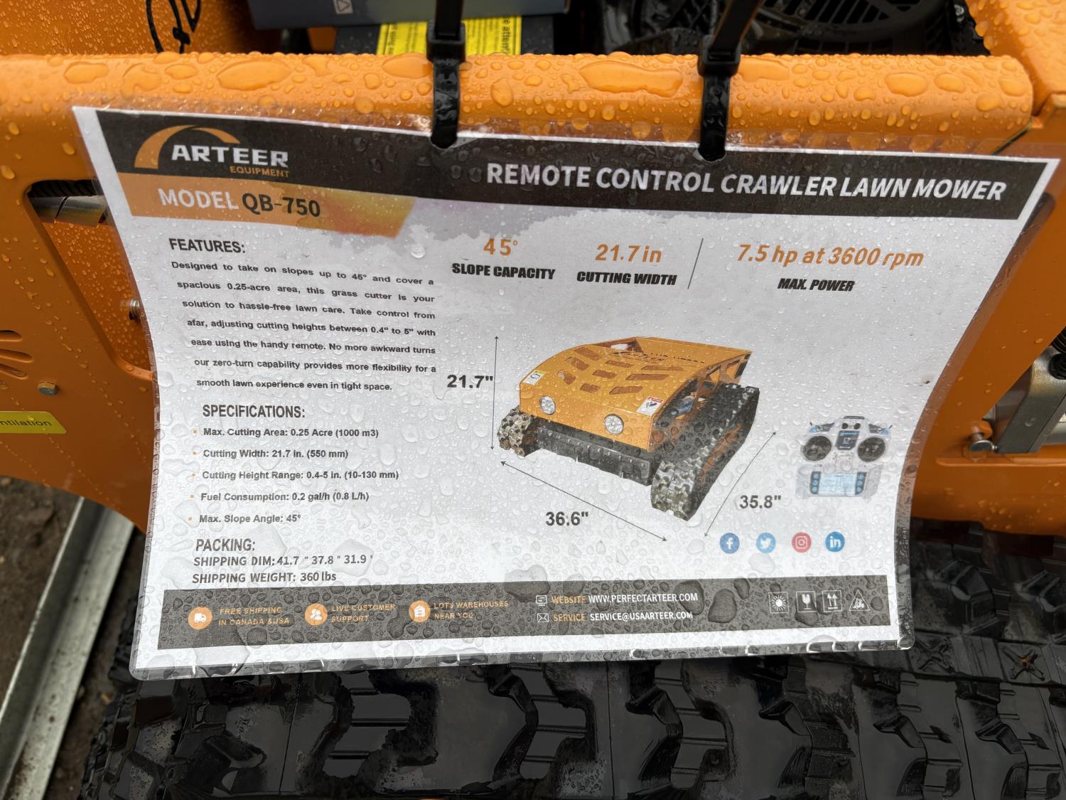 161 2025 Arteer QB-750 Remote Controlled Lawn Mower (Unused)