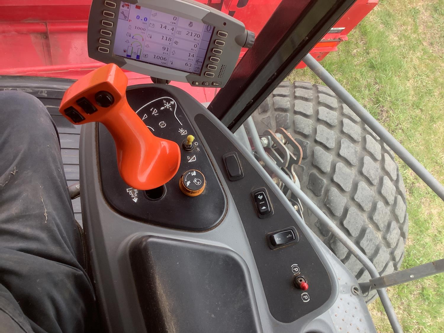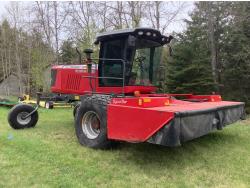 6.6 Liter engine, hydro drive, cab, AC, heat, radio, buddy seat, 23.1X26 drive tires, Agco 1950 Razor Bar 16 ft disc mower conditioner, steel on steel rolls, skid shoes