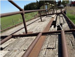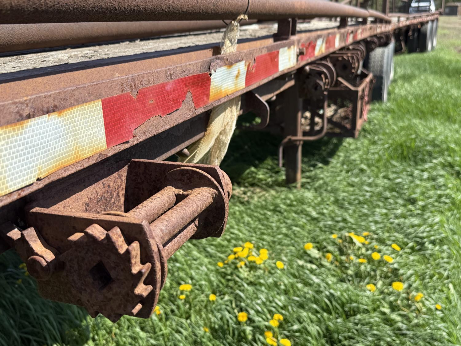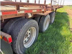 steel deck, stake pockets, rub rails, cargo winches, air brakes, bale racks, air ride suspension, all aluminum wheels, 11R24.5 tires