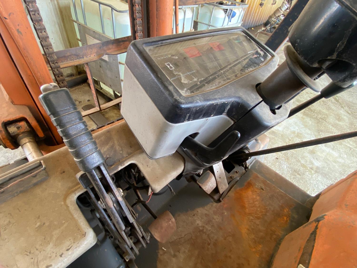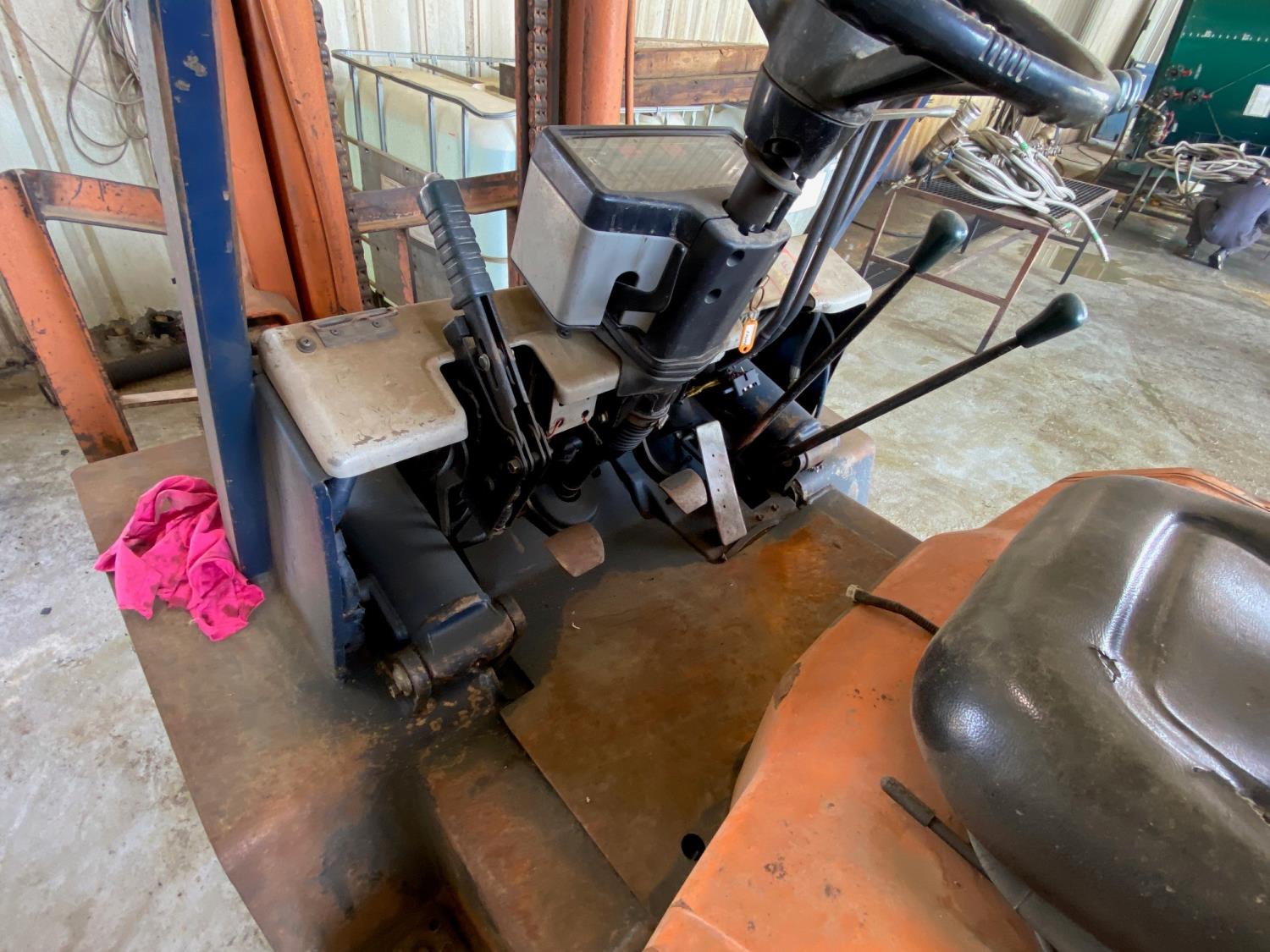 propane, 6 cylinder engine, no propane tank, 1 mast stages, 48 inch pallet forks, 7.50-15 front tires, 7.00-12 rear tires
