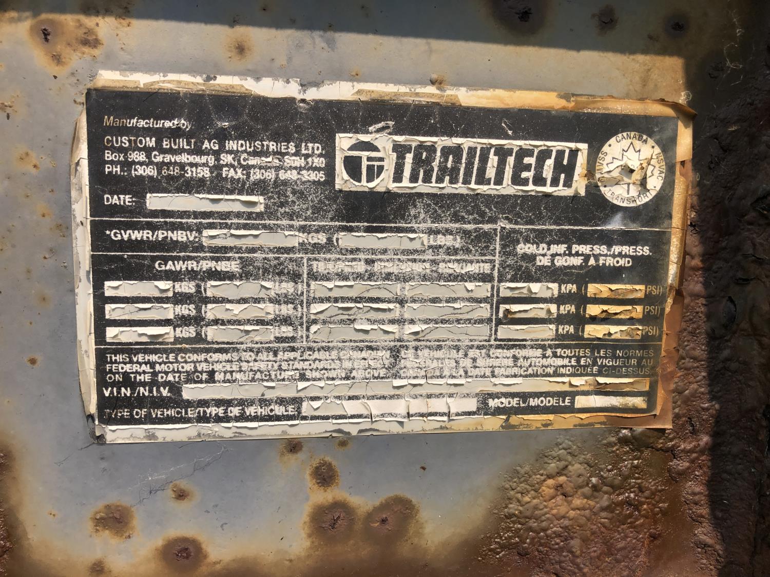 - May require a VIN in the province of registration at buyer's cost