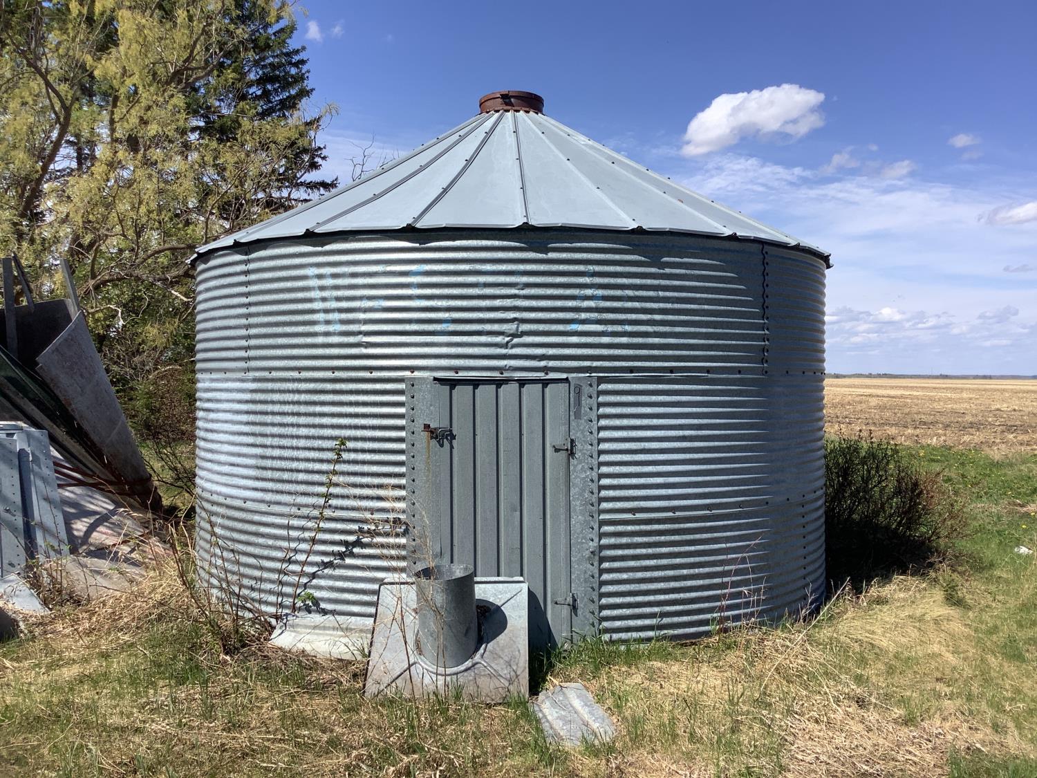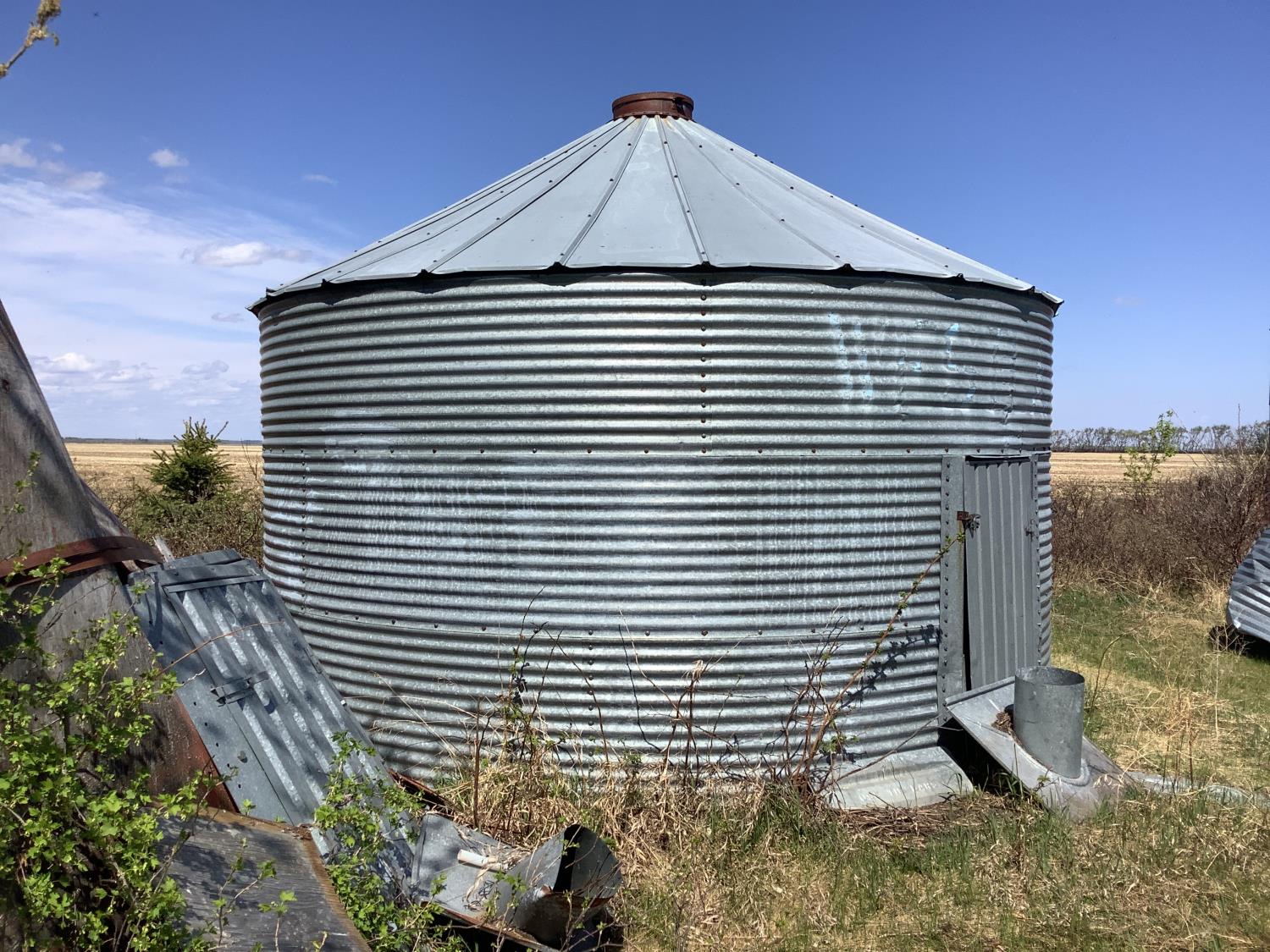 wood floor, Bin # 9. Note: There is a bit of spoiled grain in bin so take caution, if floor is in poor condition it can stay behind