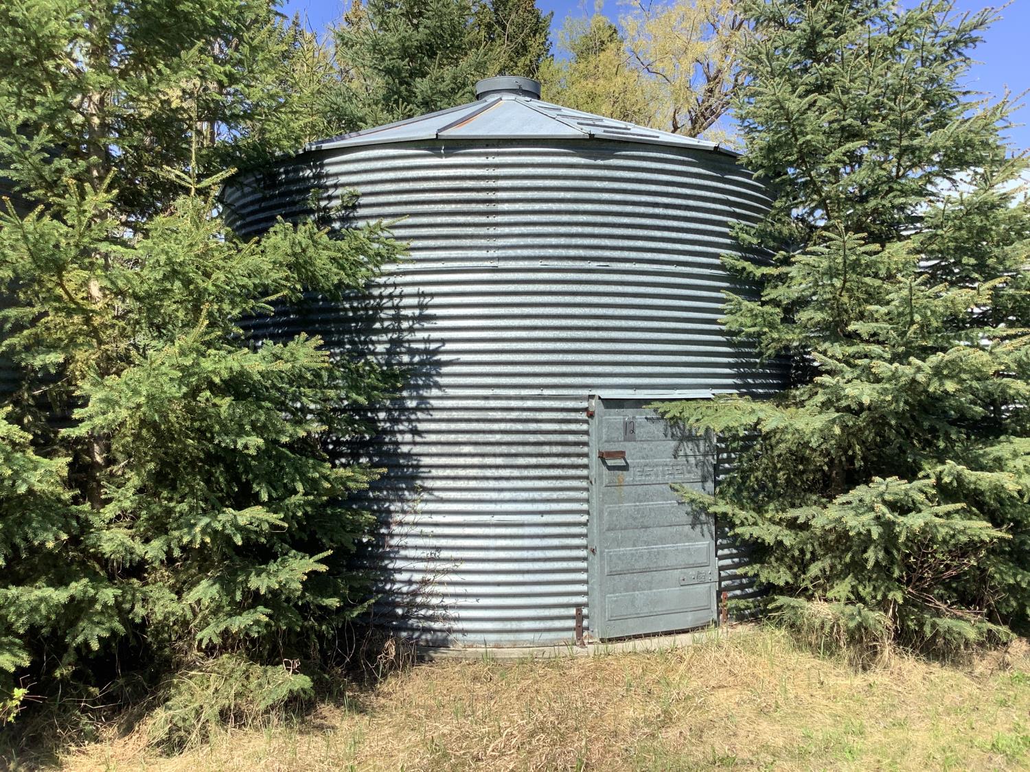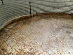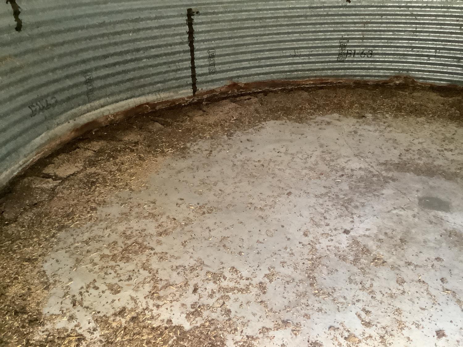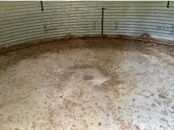 on concrete floor, Bin # 12. Note: There is no spoiled grain in bin. Buyer may have to cut trees away to remove bin.