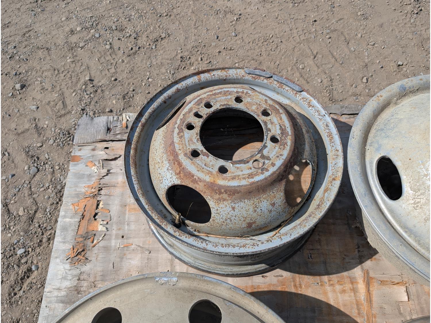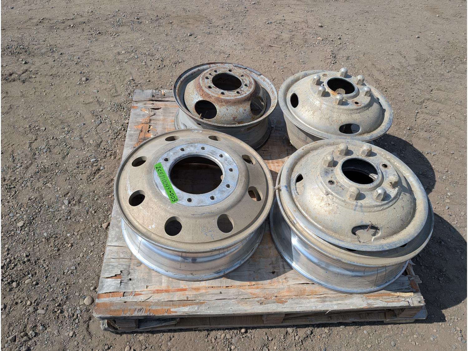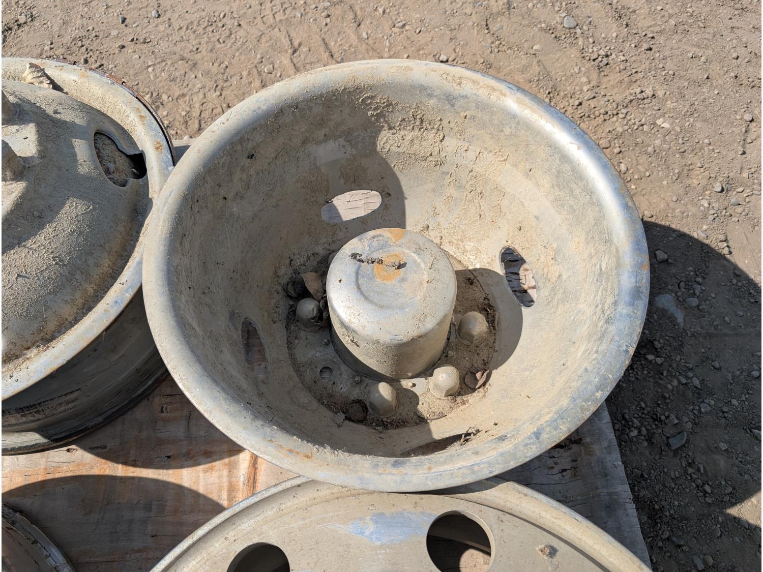 1808 (2) 19.5 X 8 Aluminum Ford Rims, (2) Hub Caps and (1) 8 Bolt Steel Rim
