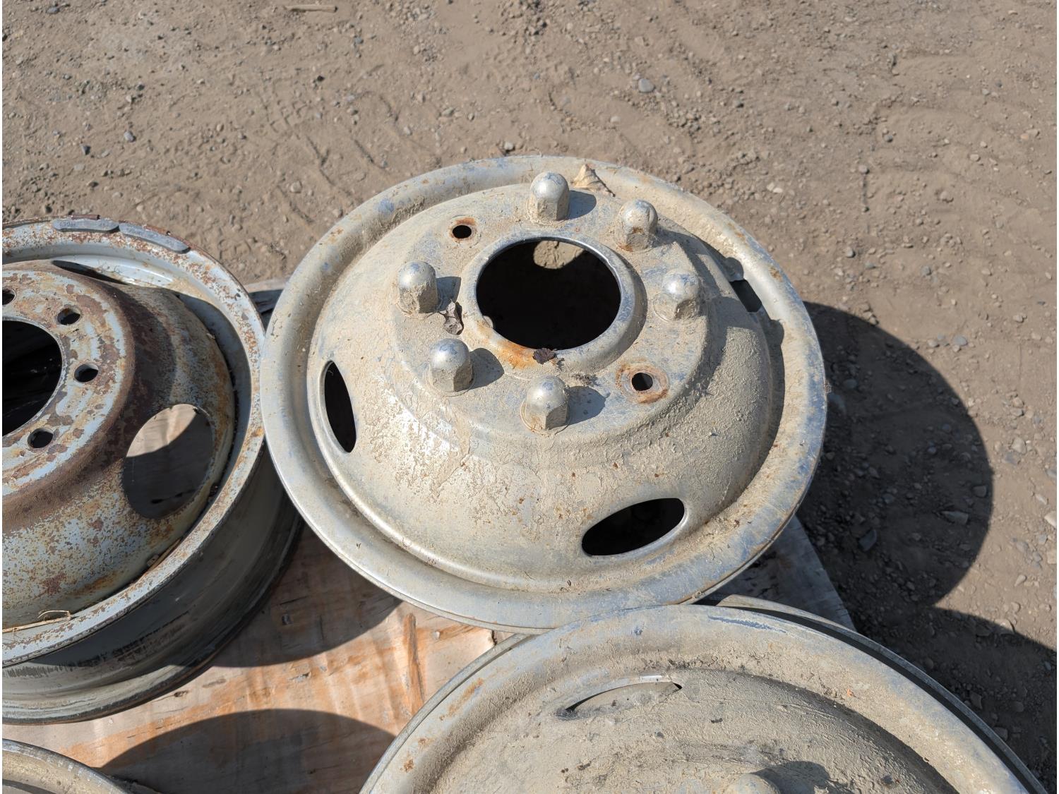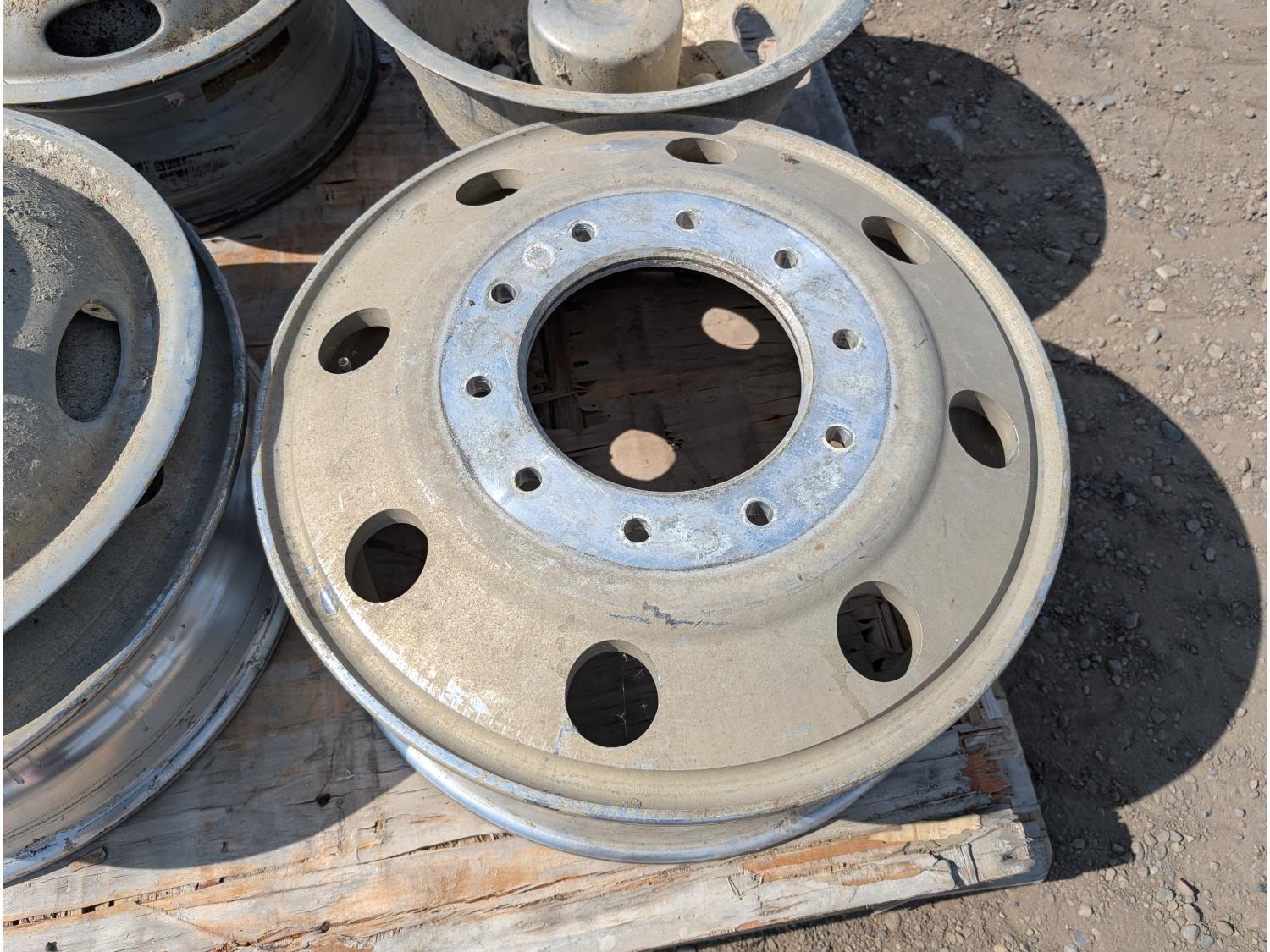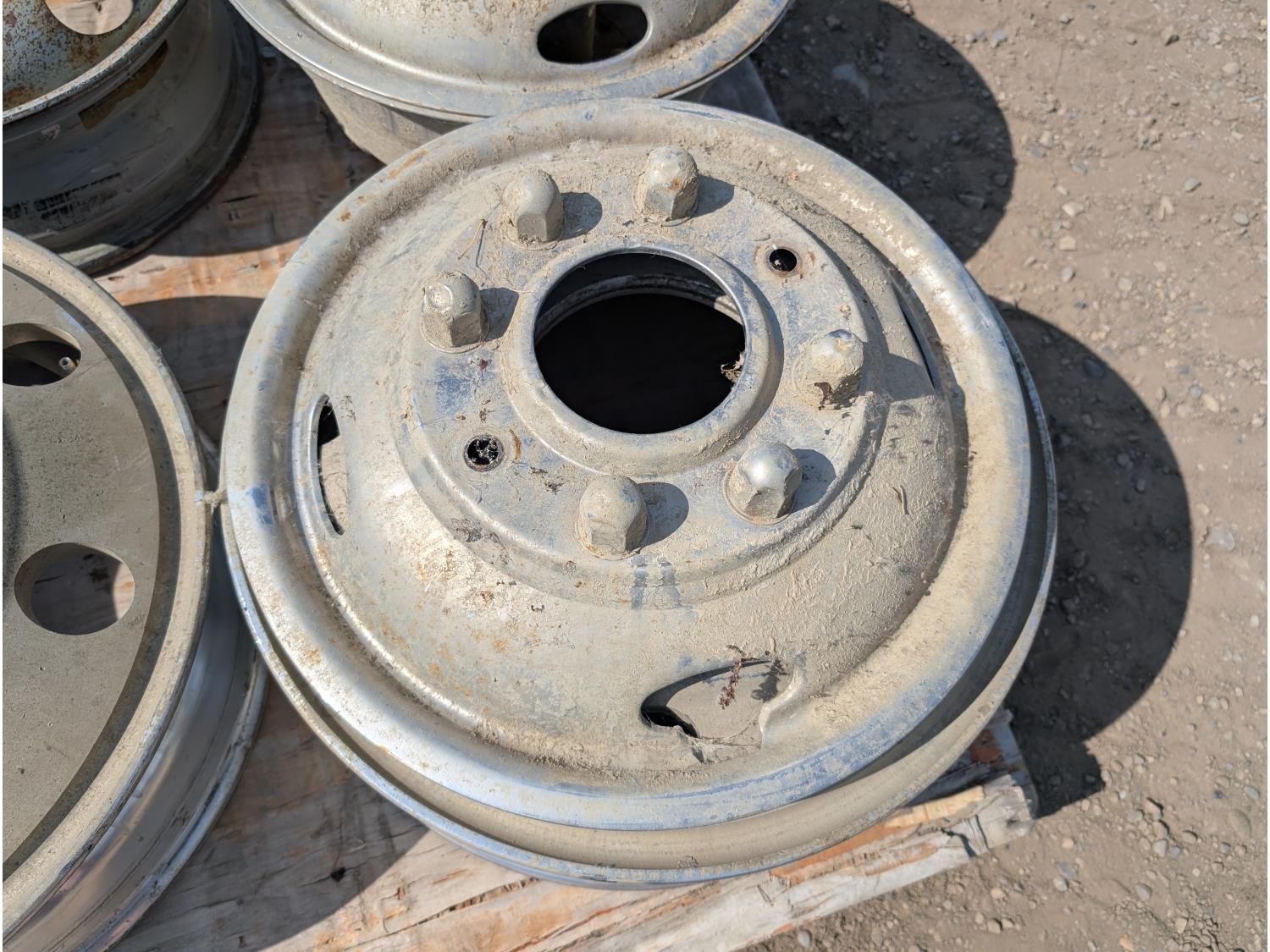 1808 (2) 19.5 X 8 Aluminum Ford Rims, (2) Hub Caps and (1) 8 Bolt Steel Rim