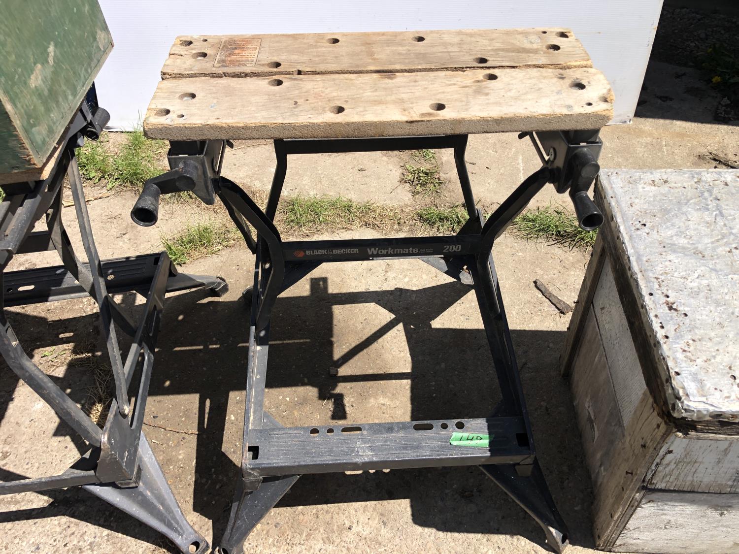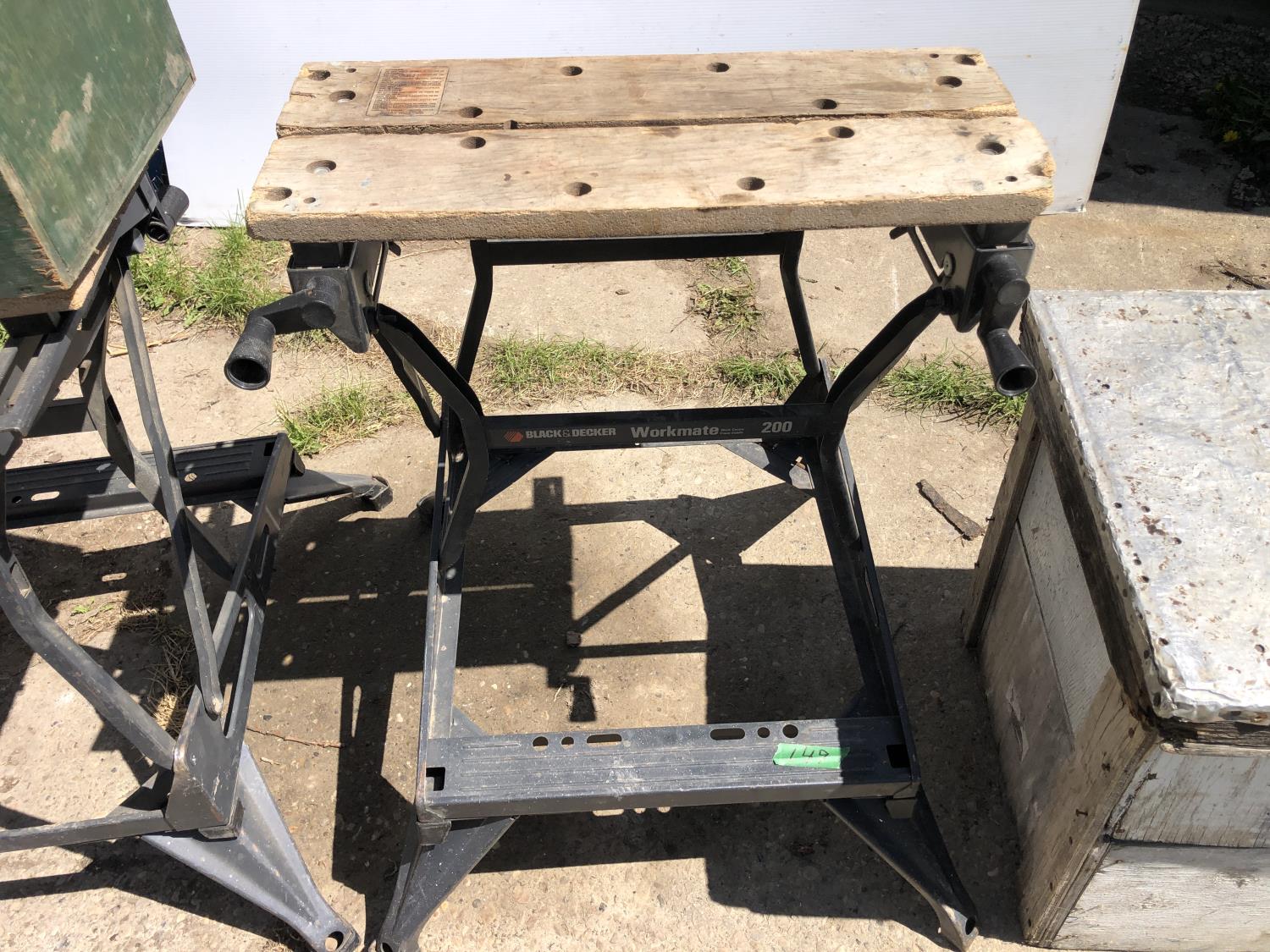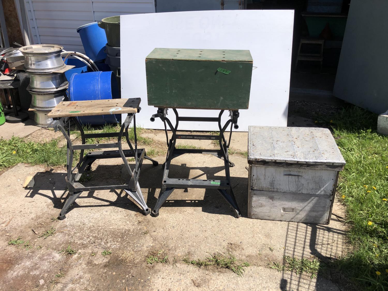 2099 (2) Adjustable Work Benches, (2) Wooden Boxes