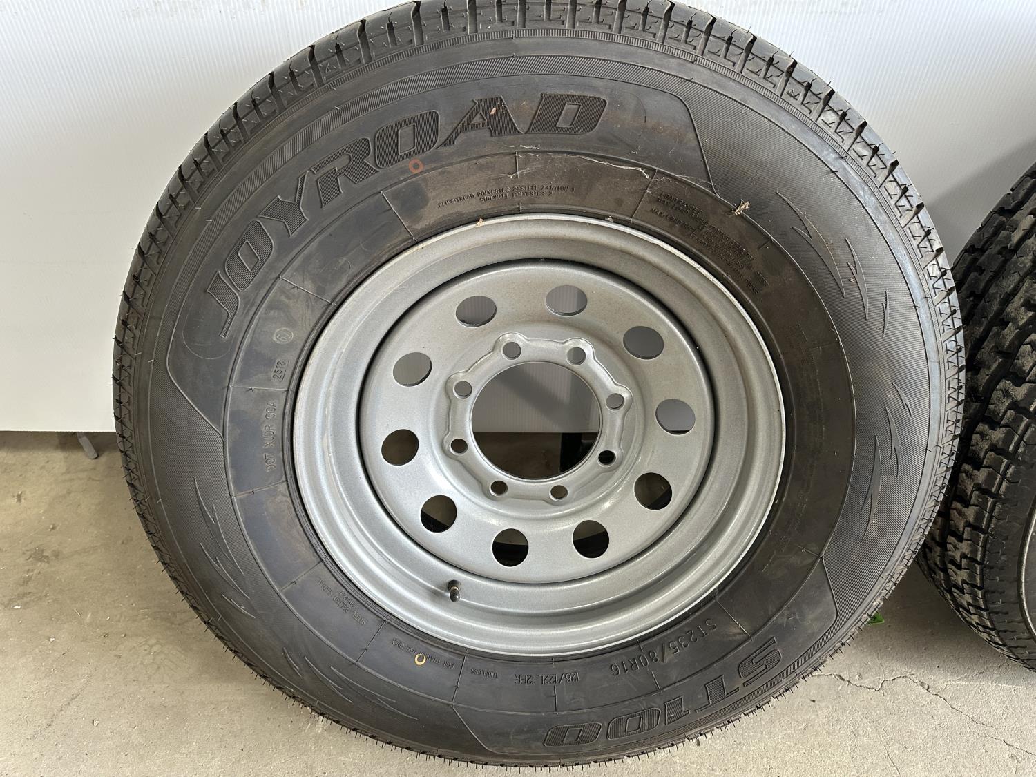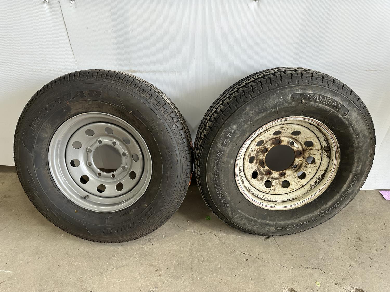 1866 (2) Different 235/80R16 Trailer Tires On 8 Bolt Rims