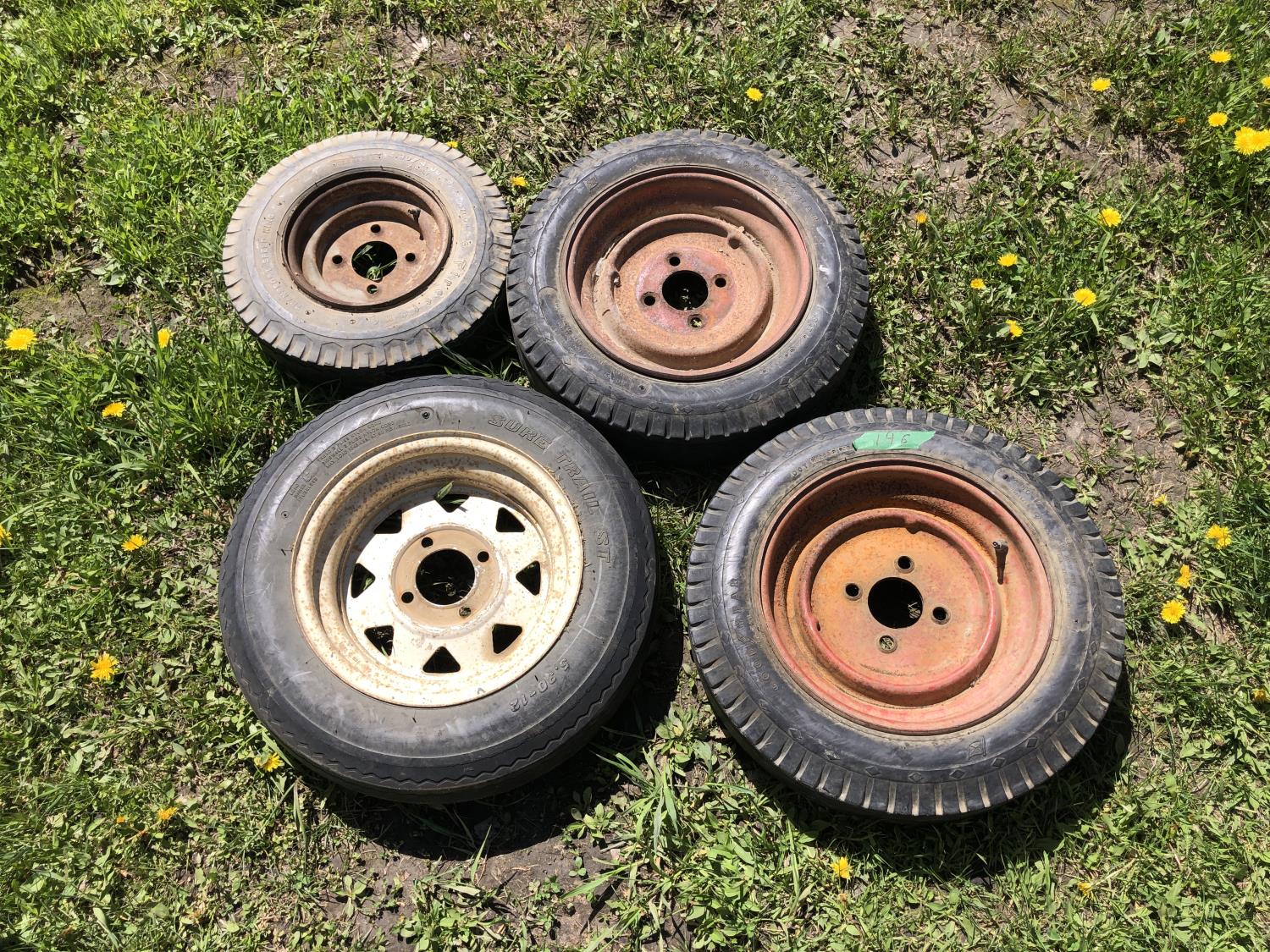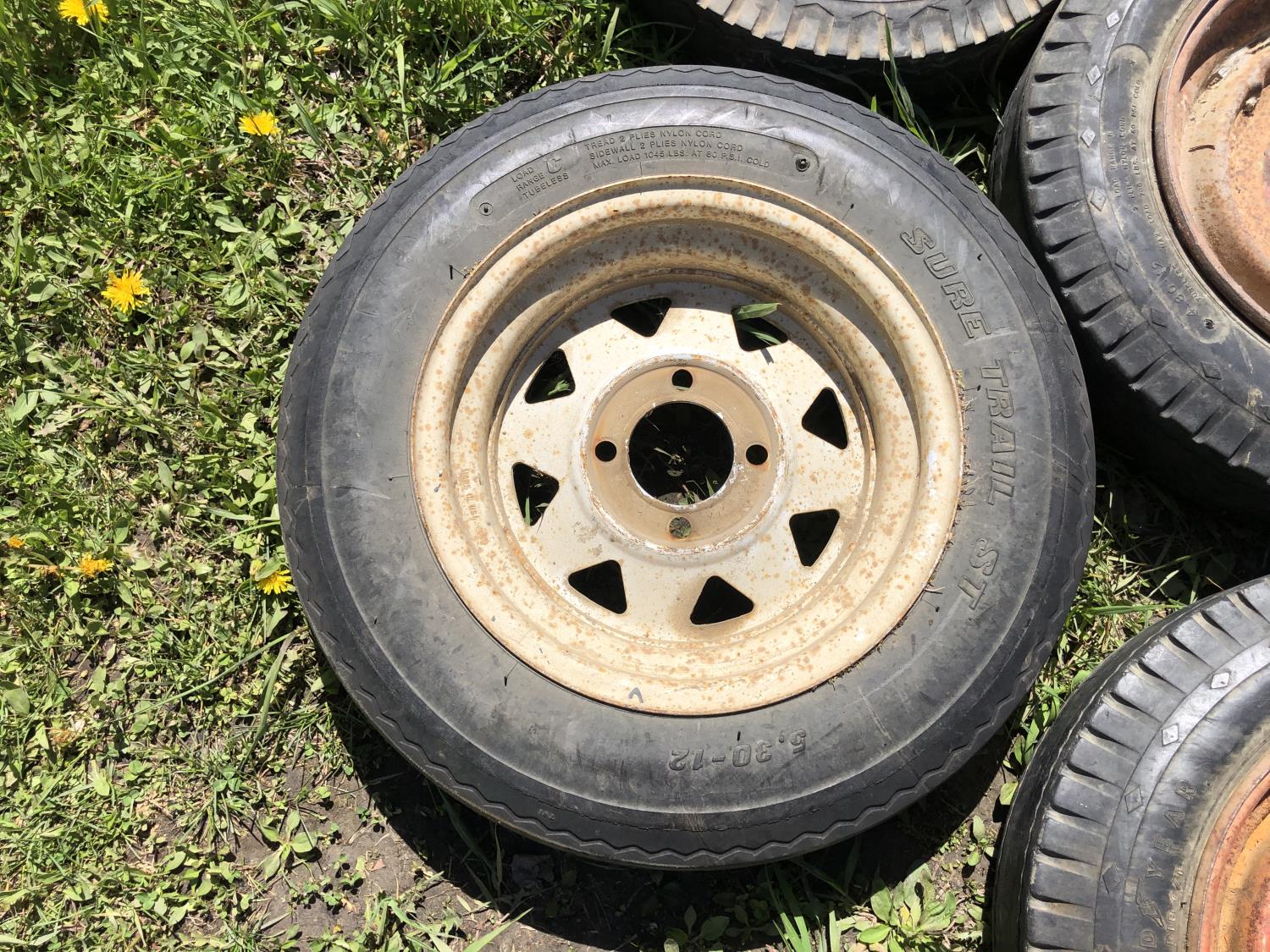 (1) 5.30-12 with 4 bolt rim, (2) 4.80-12 with 4 bolt rim, (1) 4.80-8 with 4 bolt rim