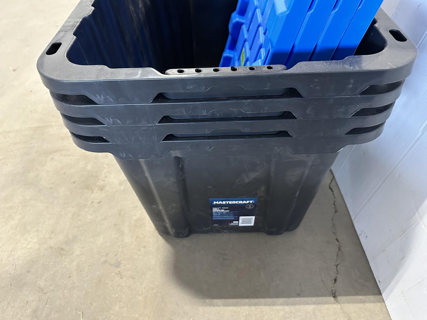 1689 (4) Mastercraft 102 L Heavy Duty Stackable Storage Boxes with Lids
