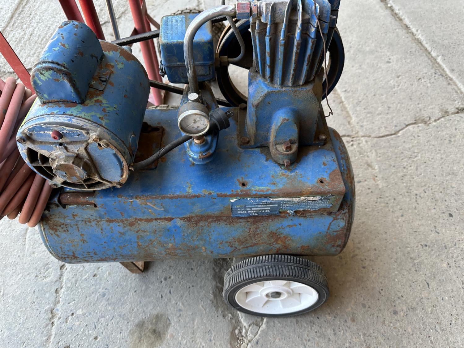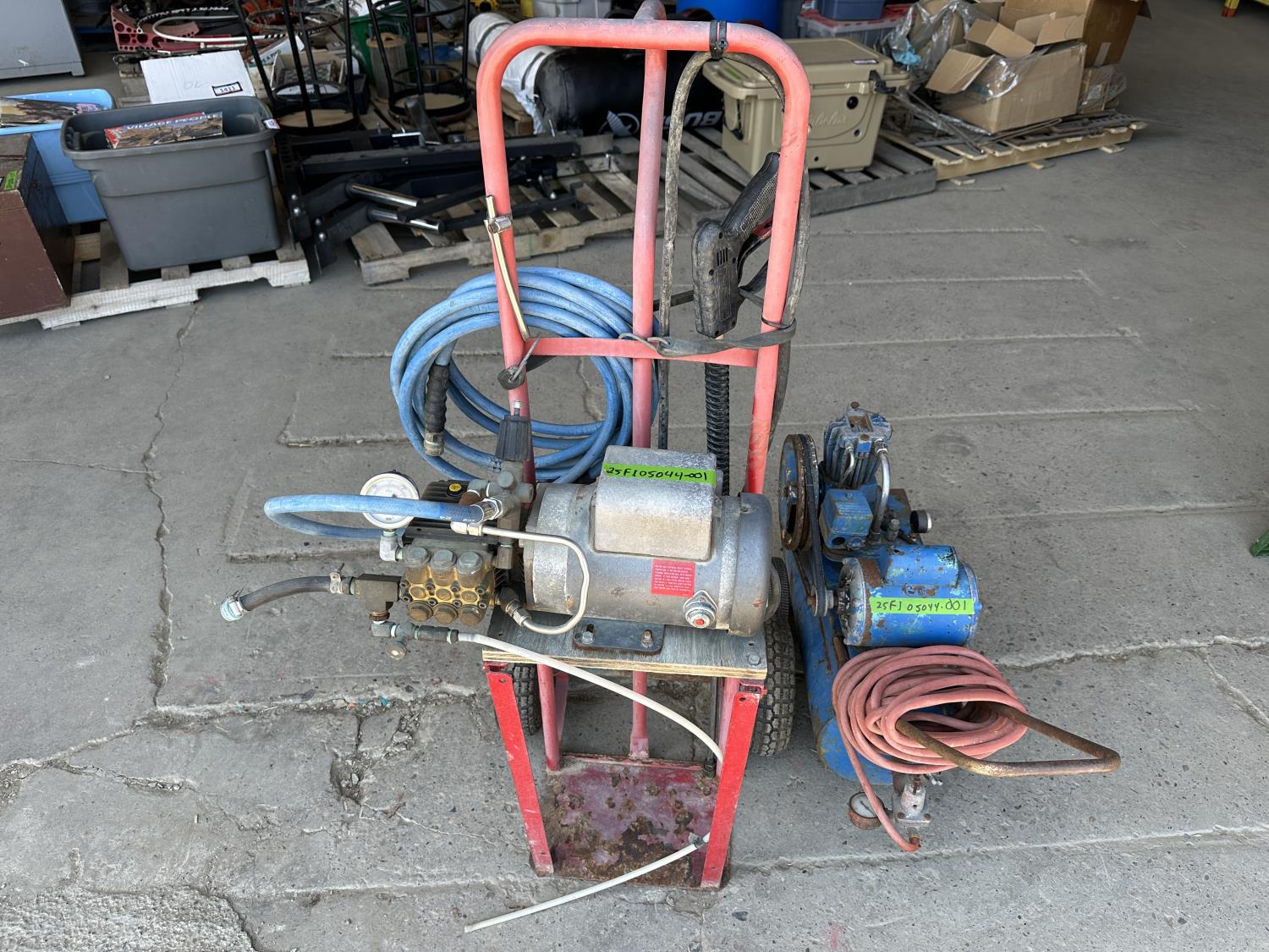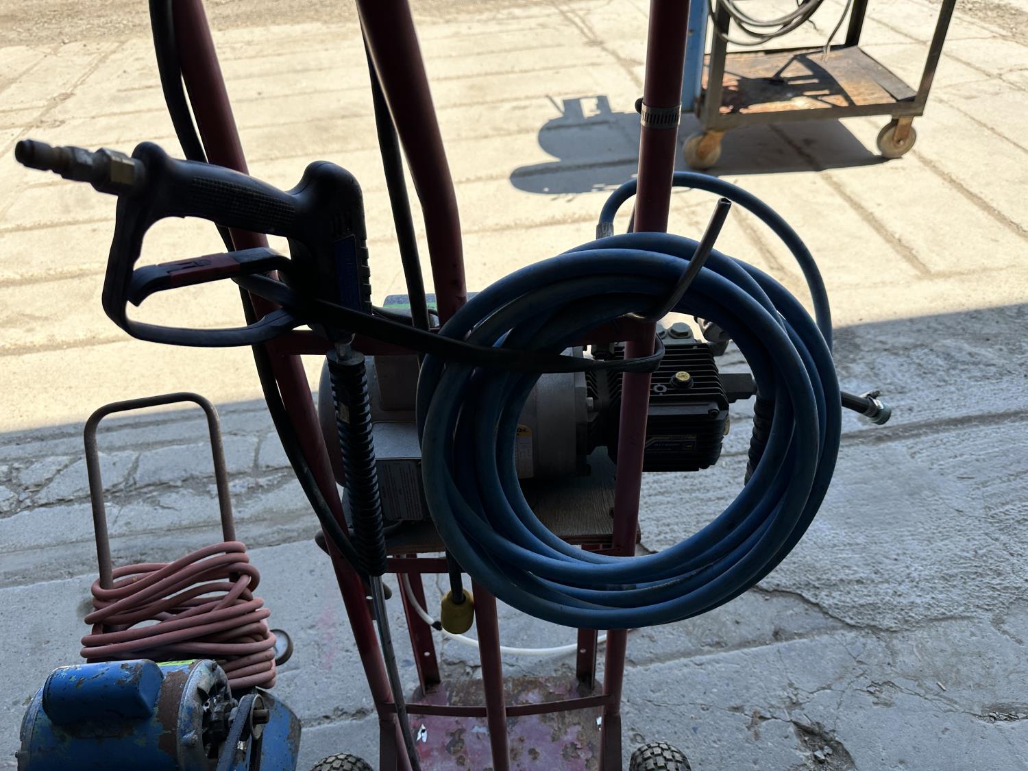 1858 Air Compressor and Pressure Washer Motor On Dolly
