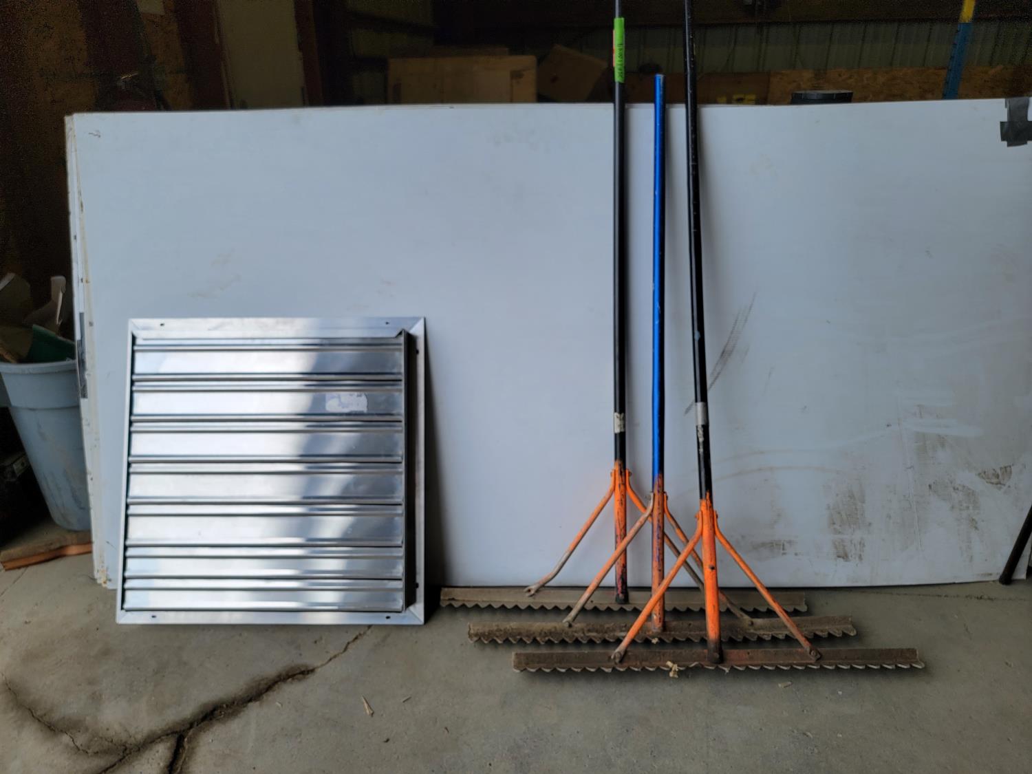 1606 Aluminum 27 Inch X 27 Inch Fan Shutter and (3) Industrial Rakes