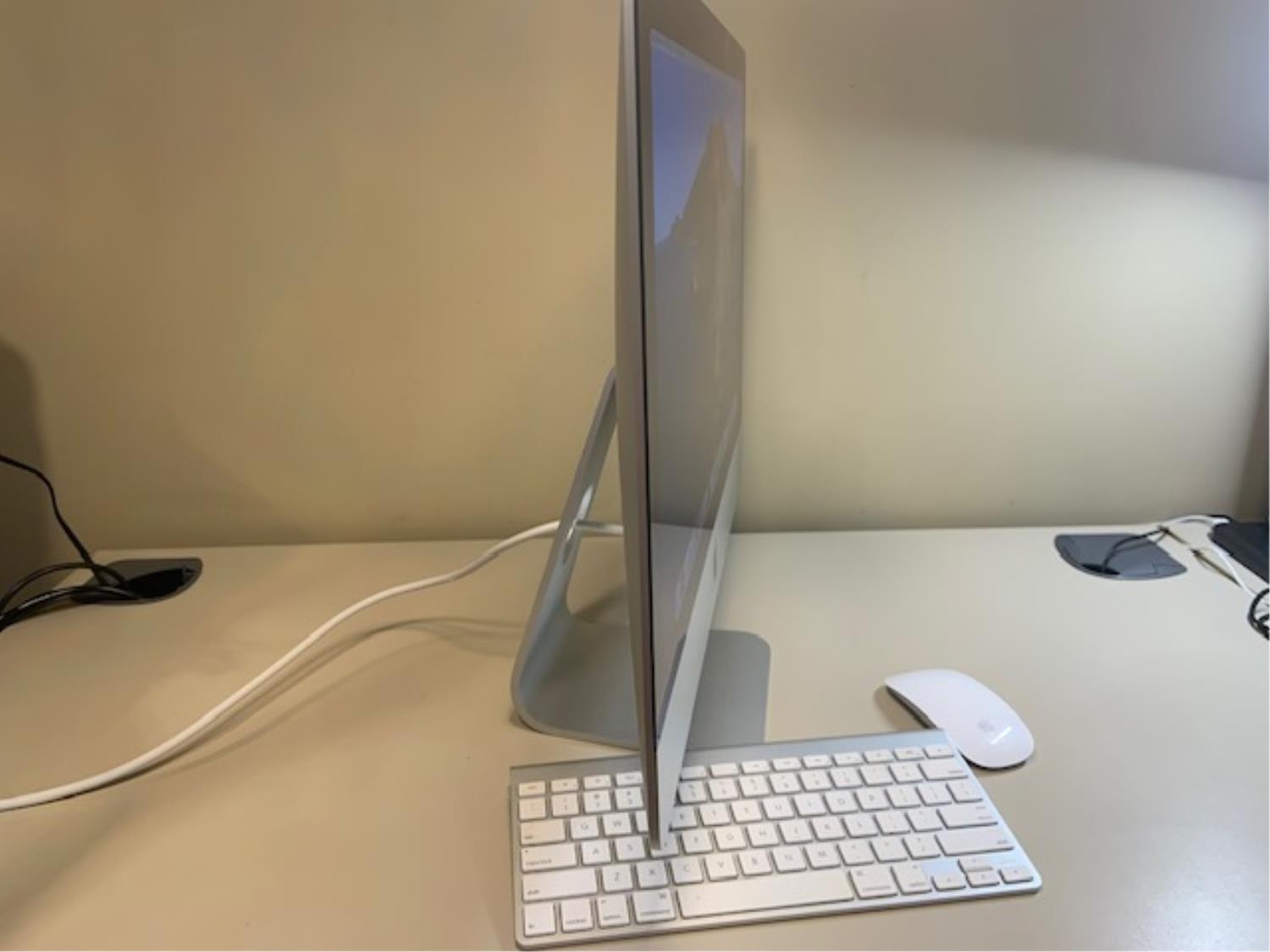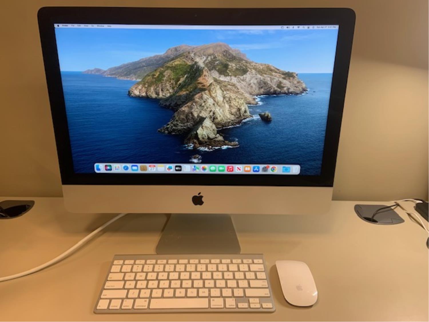 Quad Core, Intel Core i5, 2.7 Ghz processor, 8GB RAM, 1TB hard drive, Ventura operating system, 21.5 inch screen, 4 x USB, network port, card reader, Wi-Fi, Bluetooth, built in: camera, speakers, microphone, comes with wireless keyboard and mouse, power cable.