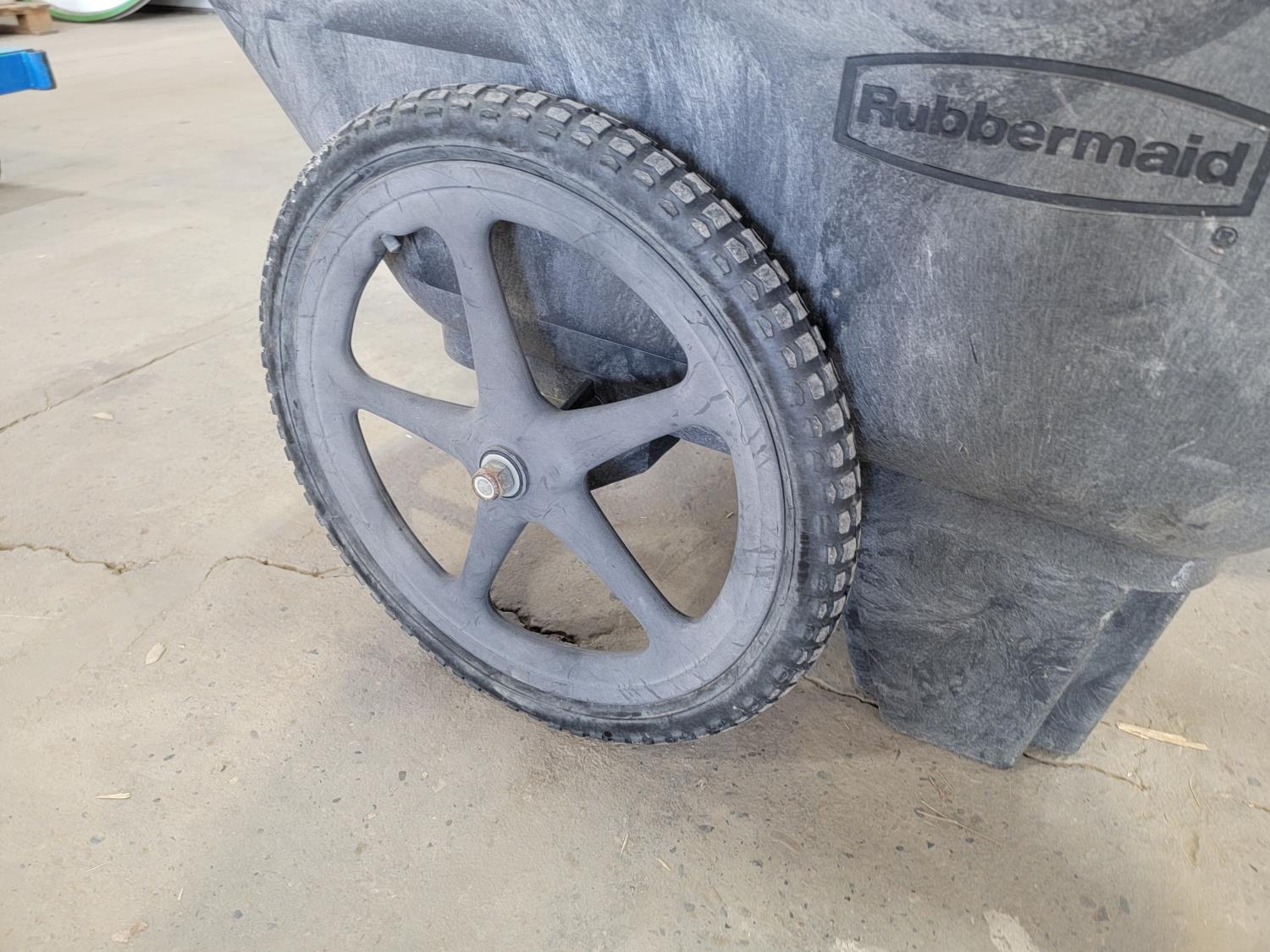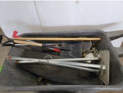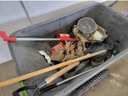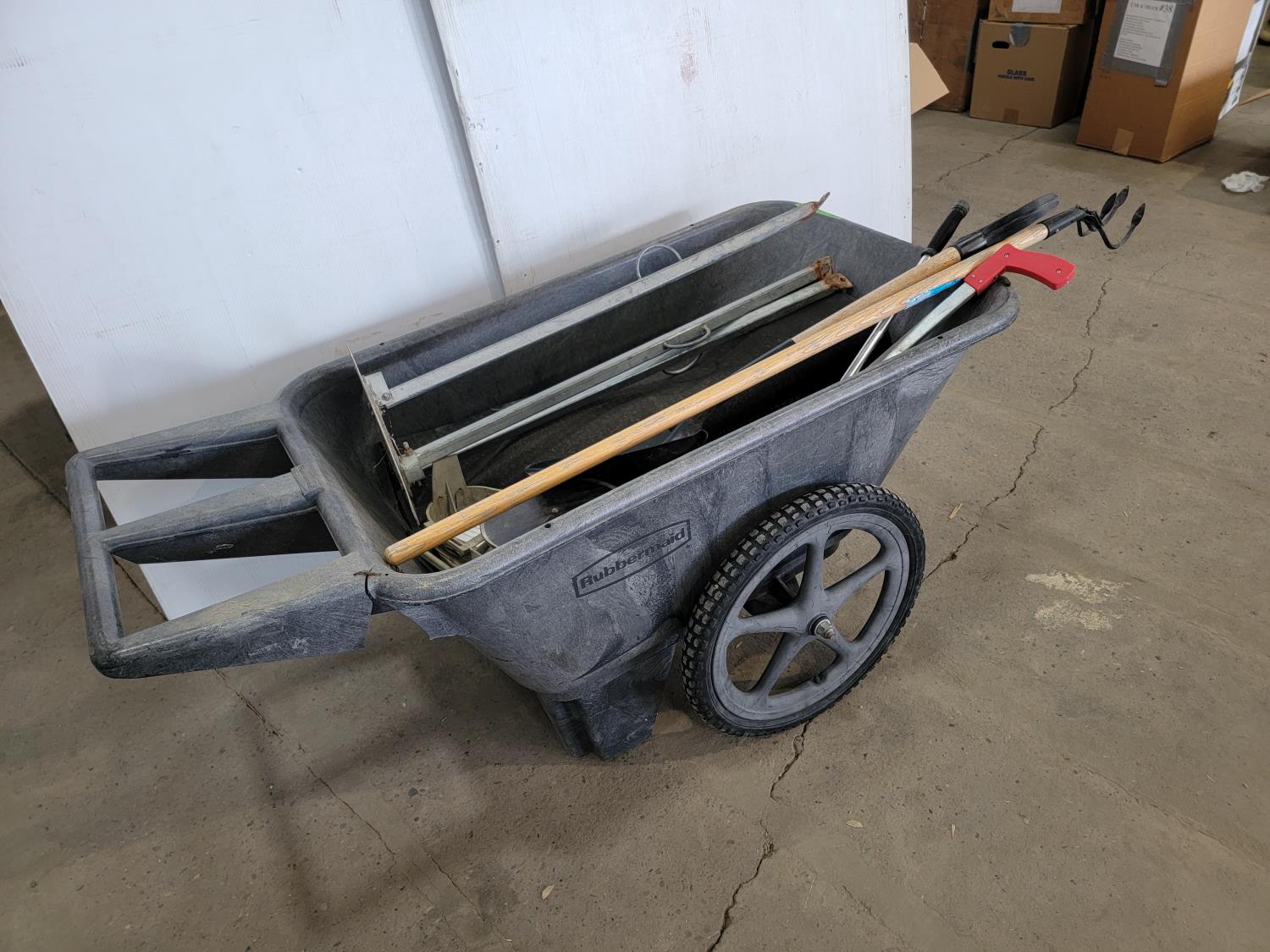 1674 Rubbermaid Big Wheel Utility Cart and Qty of Garden Tools