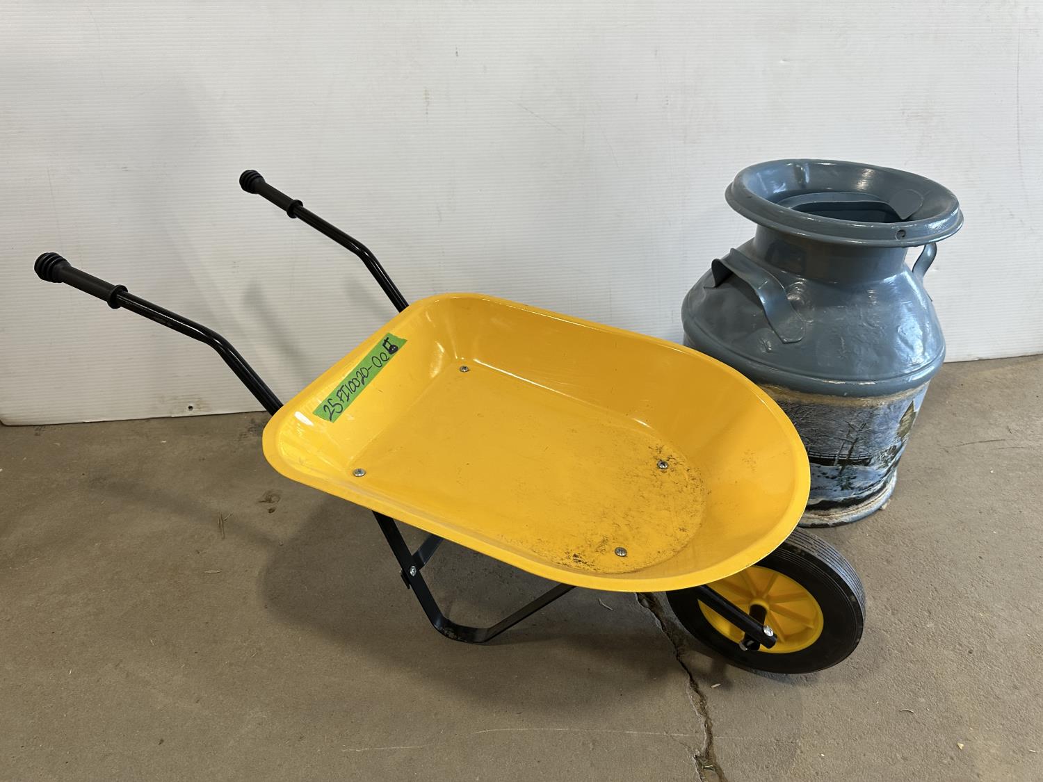 1209 Decorative Cream Can and Children's Wheelbarrow