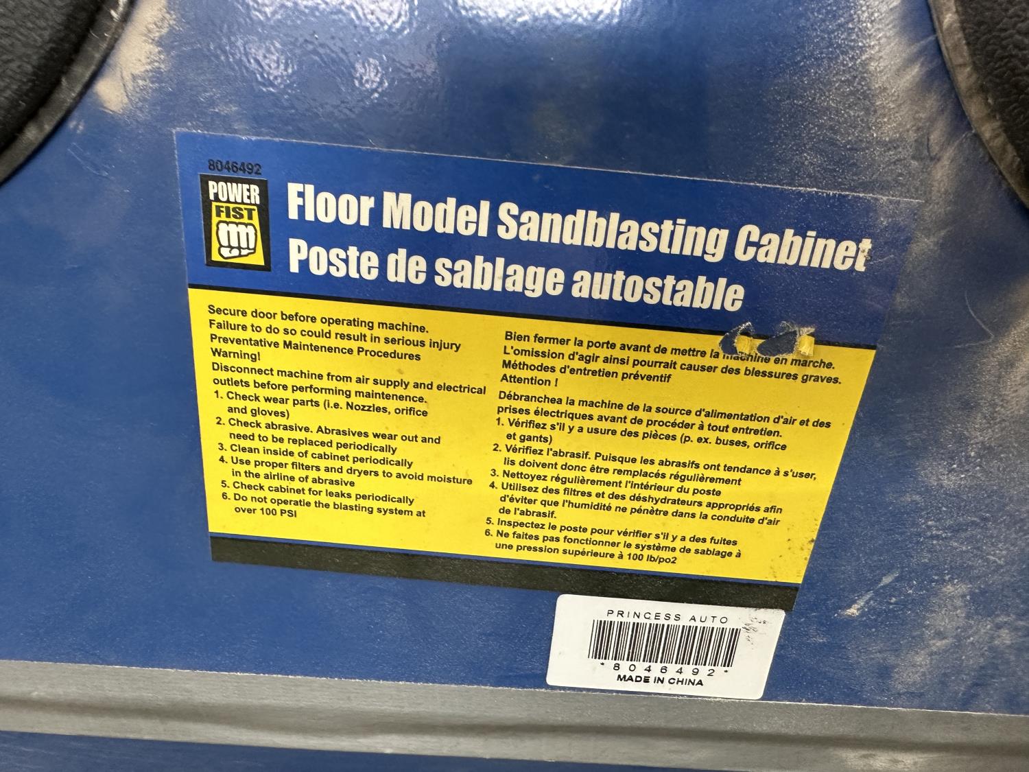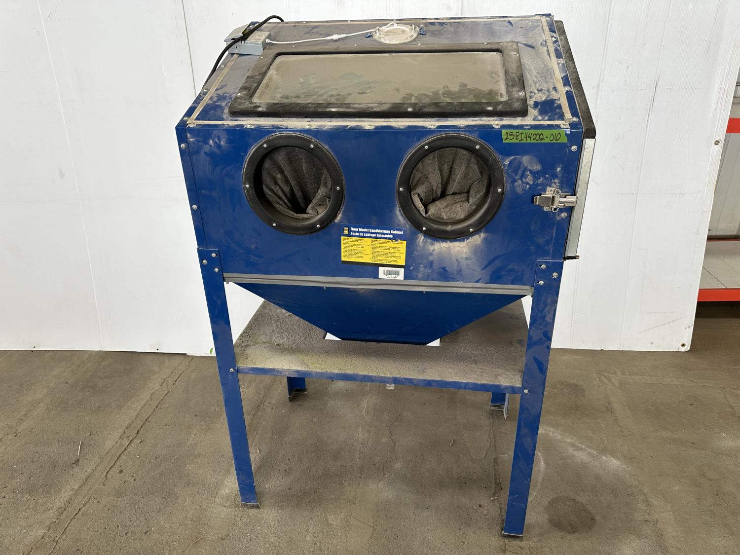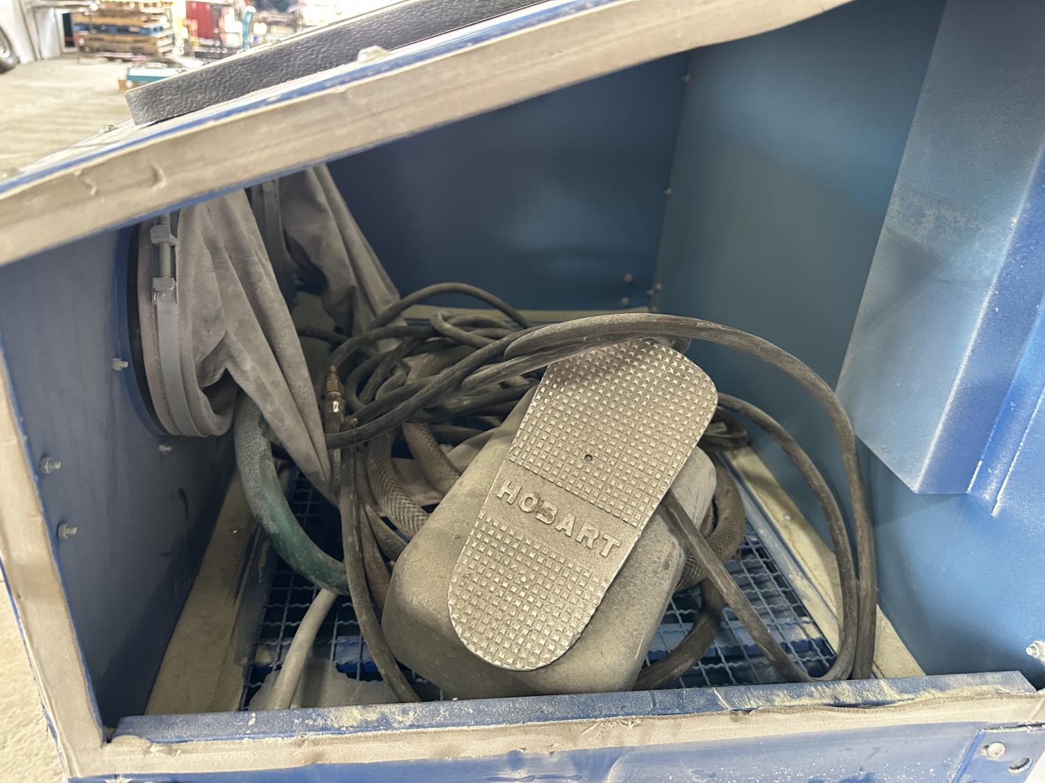 1443 Powerfist Floor Model Sandblasting Cabinet with Hobart Foot Pedal and Hoses