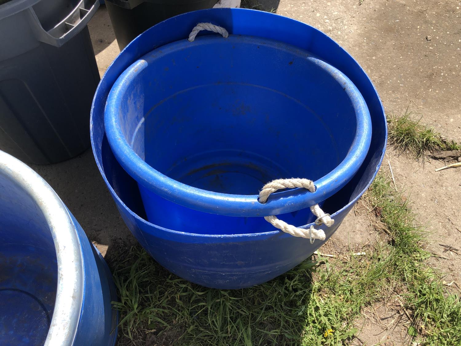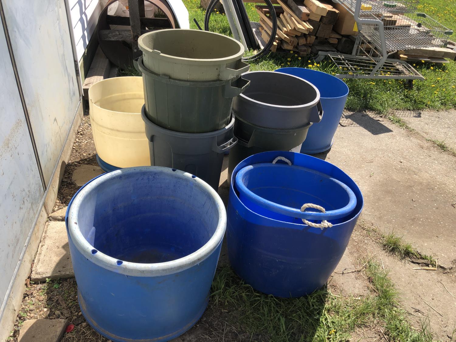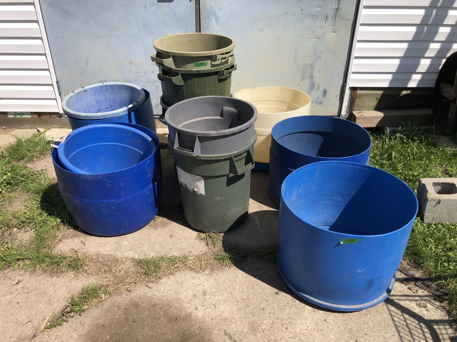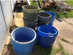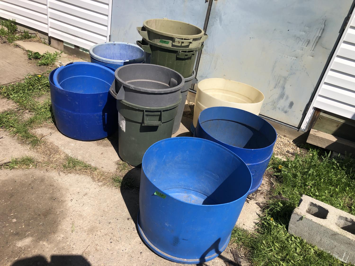 2188 Qty of Cut Off Poly Barrels, Poly Garbage Cans & Poly Tubs