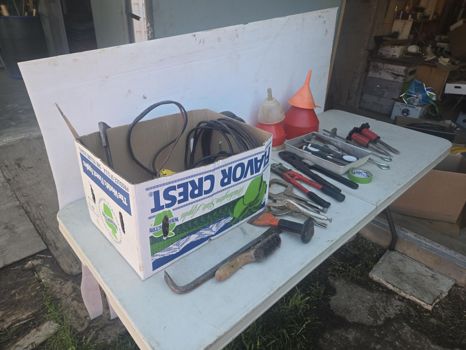 2174 Qty of Funnels, Hand Tools, Cord & Misc Hardware
