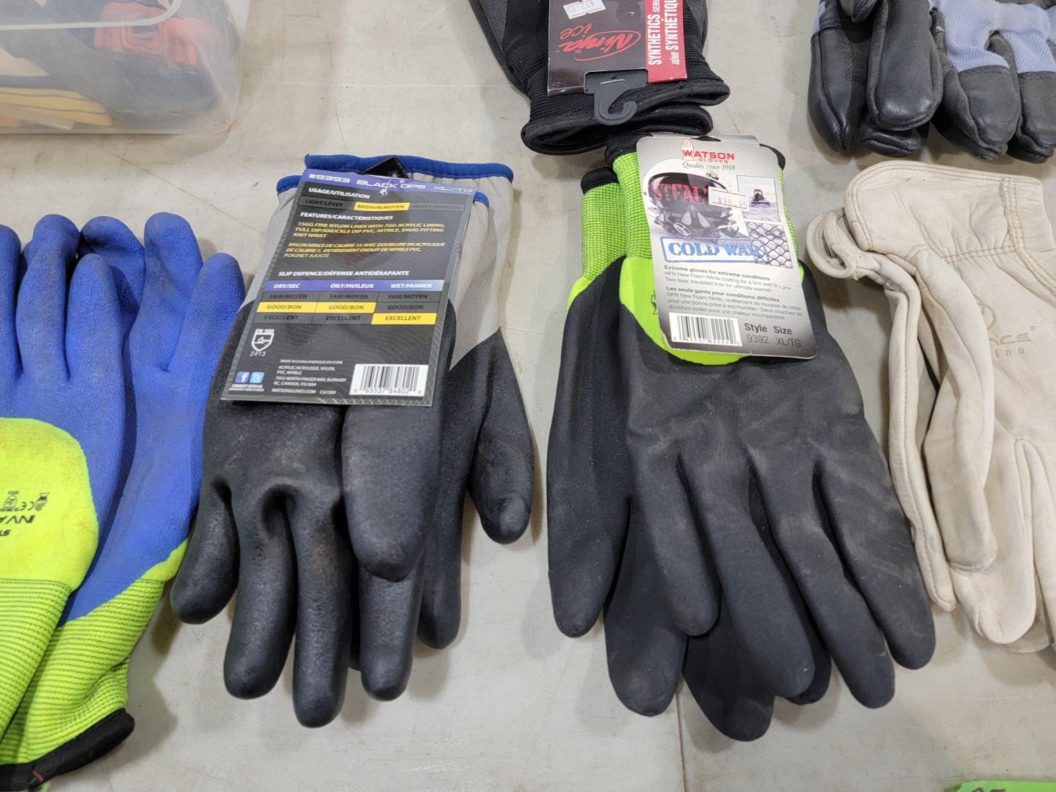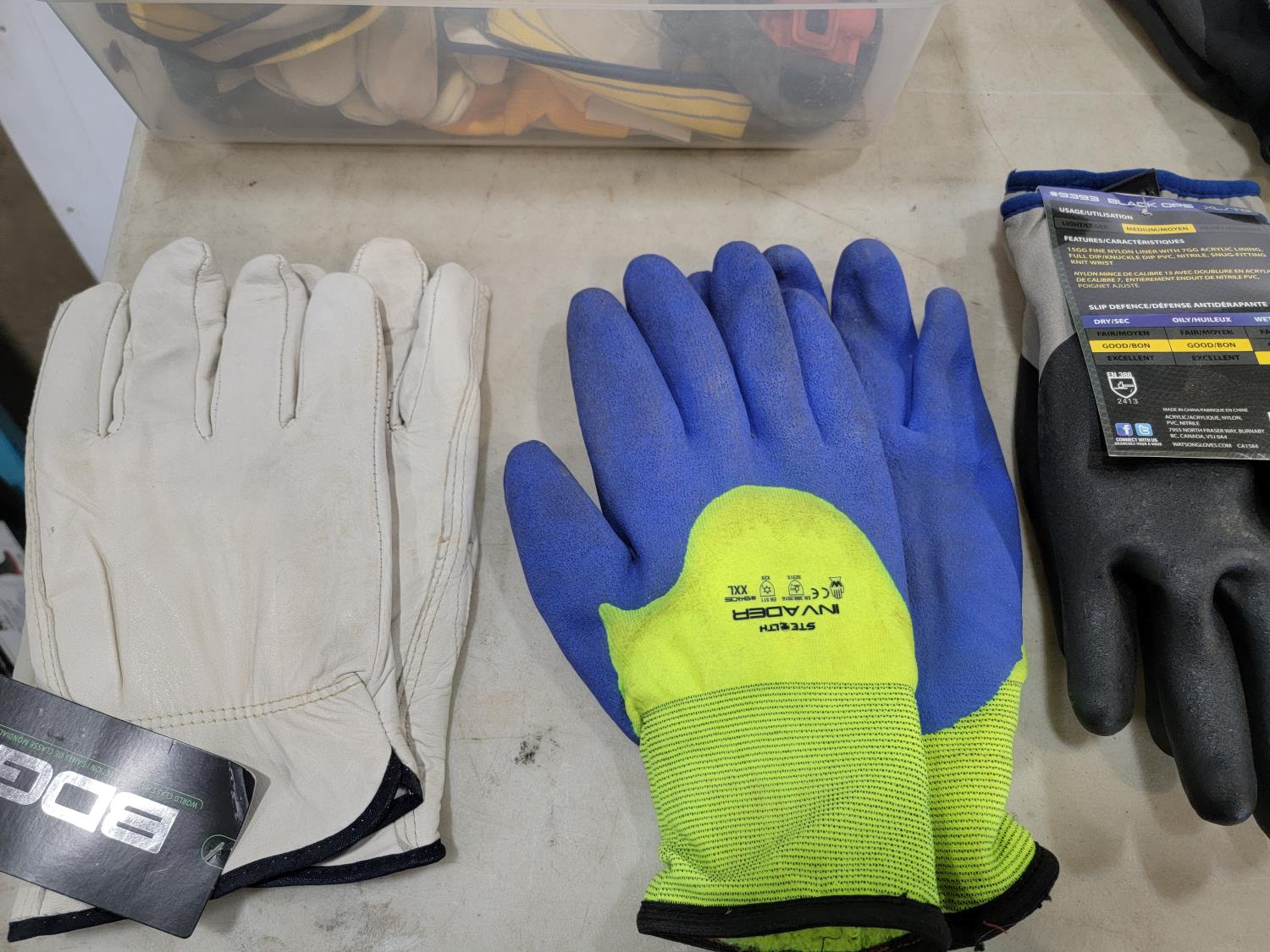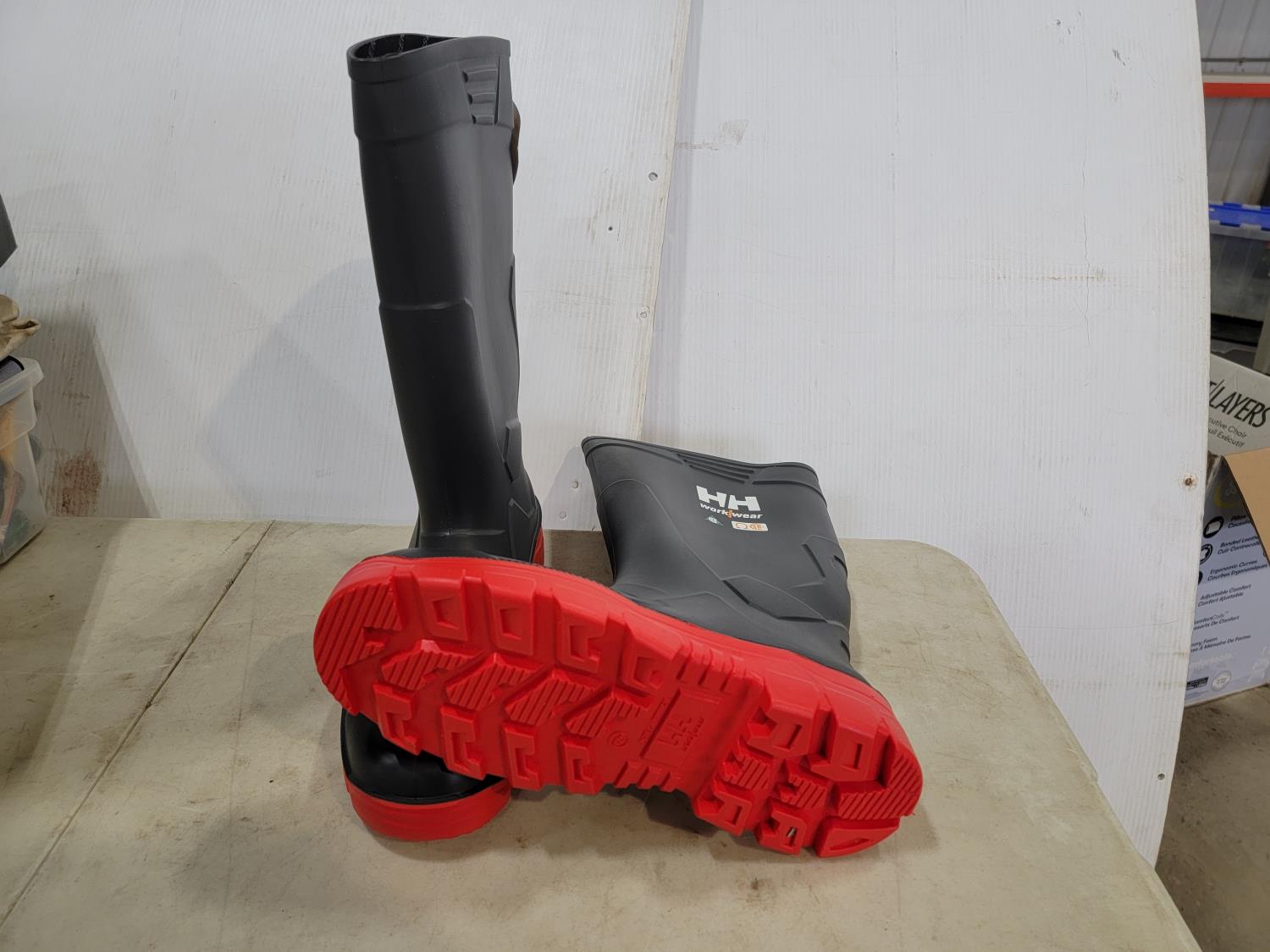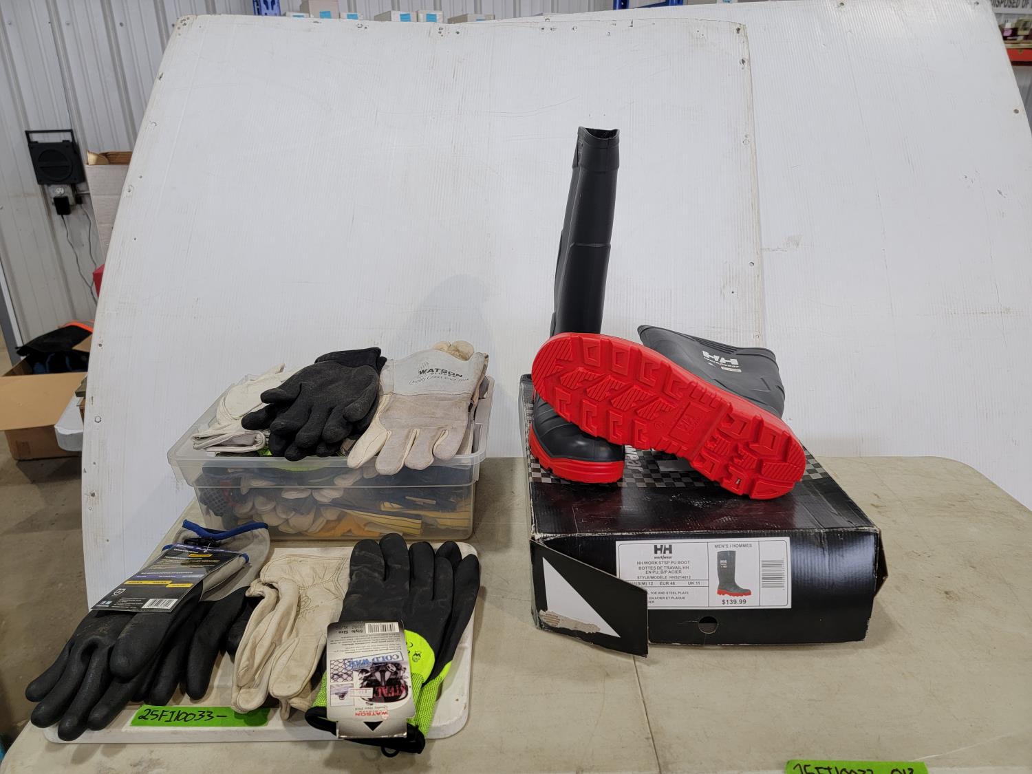 1622 Qty of Gloves and Helly Hansen Size 12 Steel Toe Rubber Boots