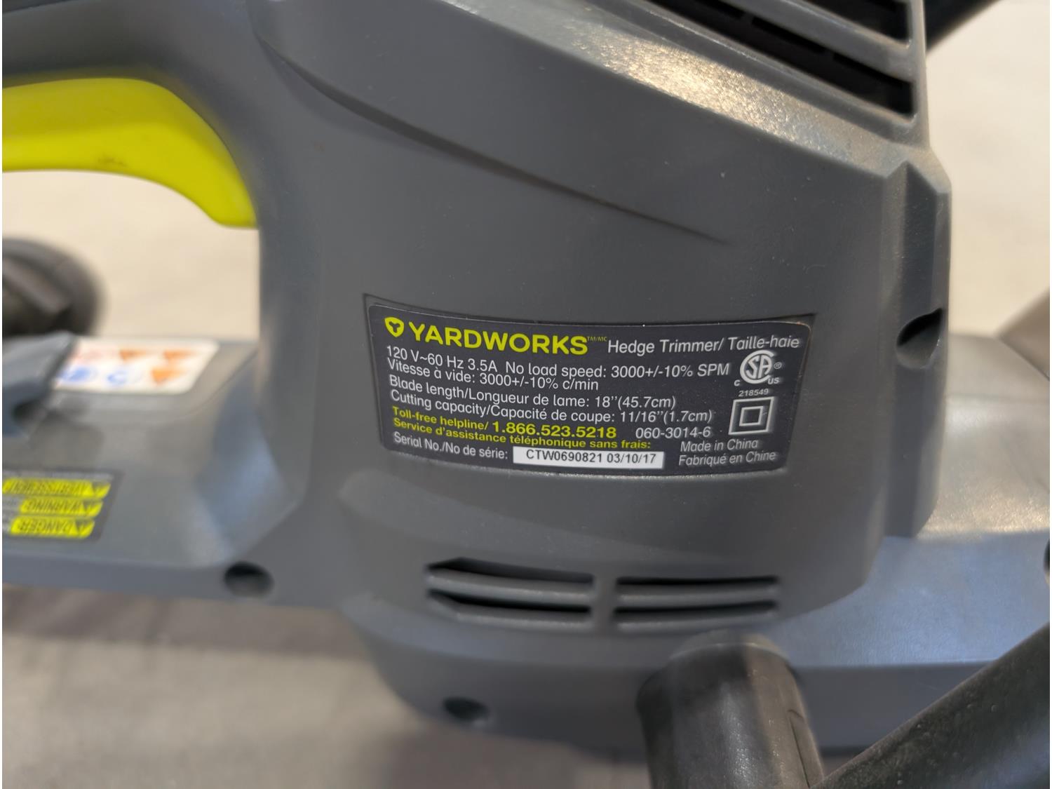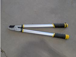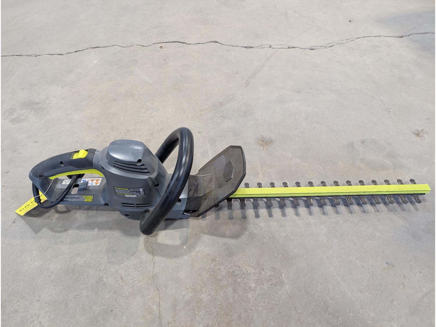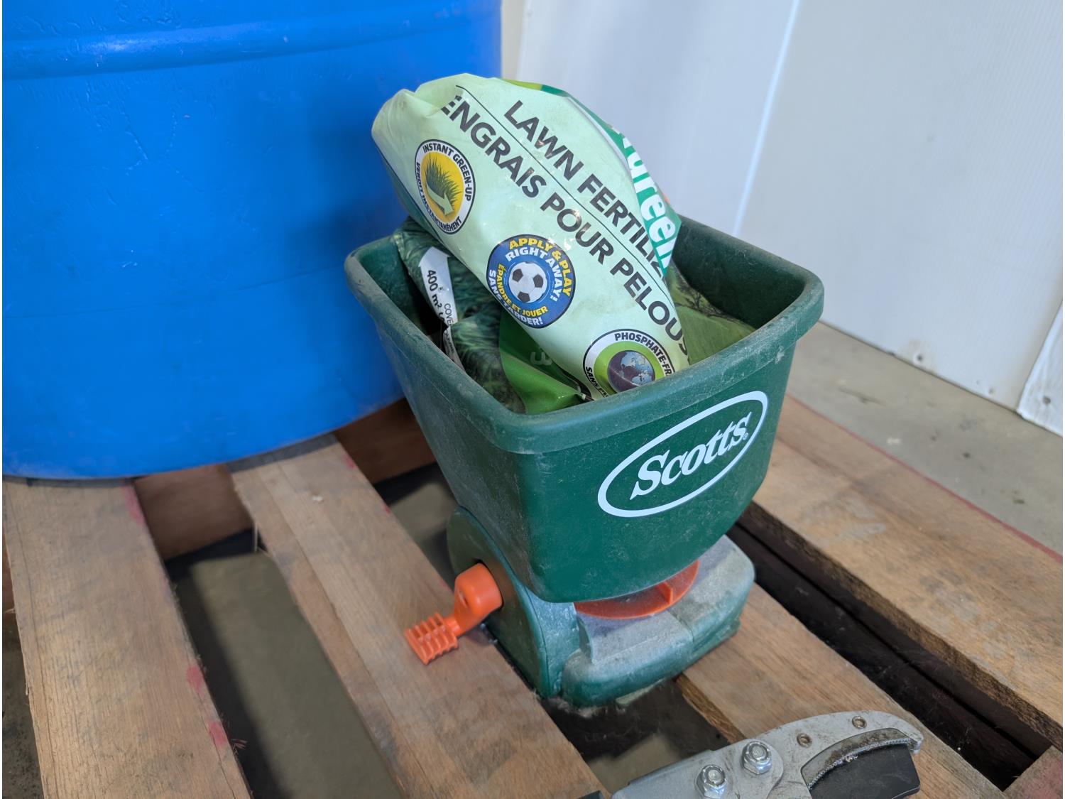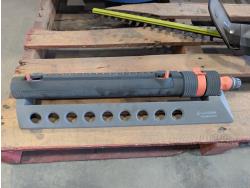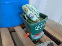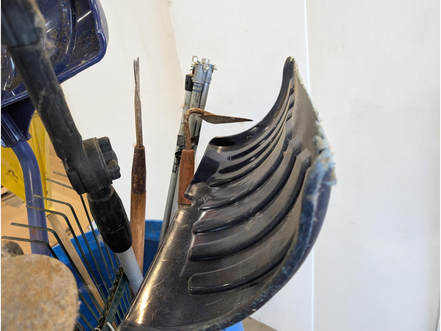 Rakes, shovels, sprinkler, electric hedge trimmer, pruning shears, hand-held broadcast seeder
