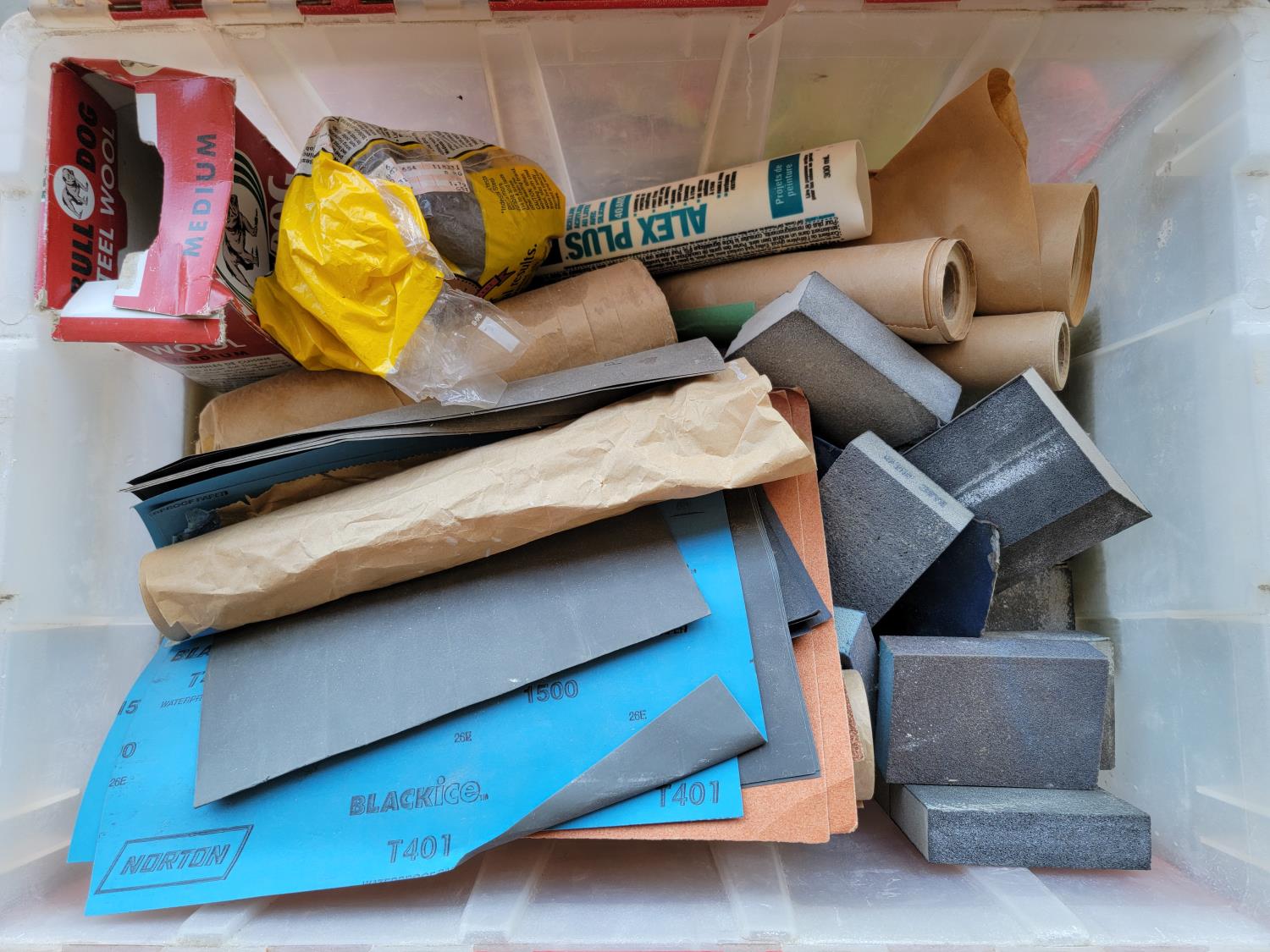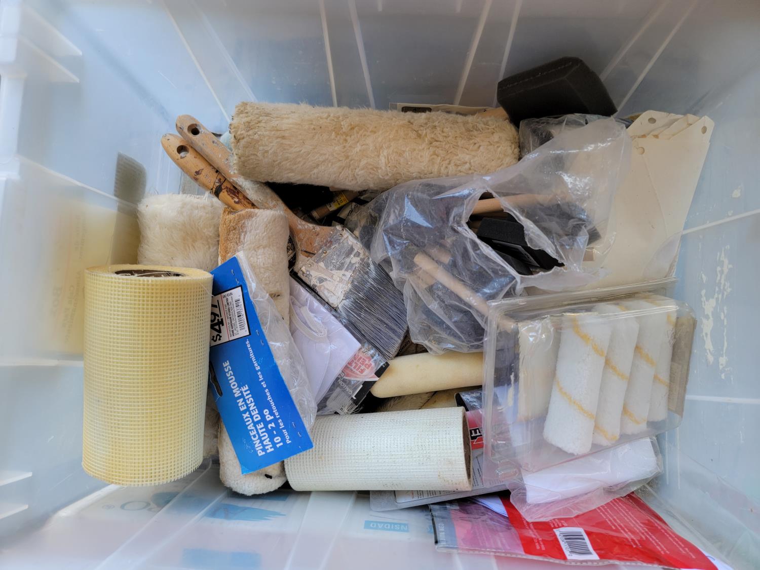 Paint sprayer, tapes, sanding supplies, paint brushes, rollers, painters plastic
