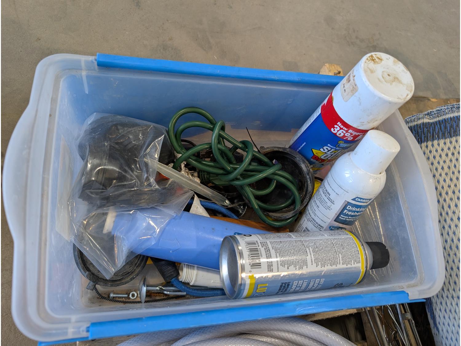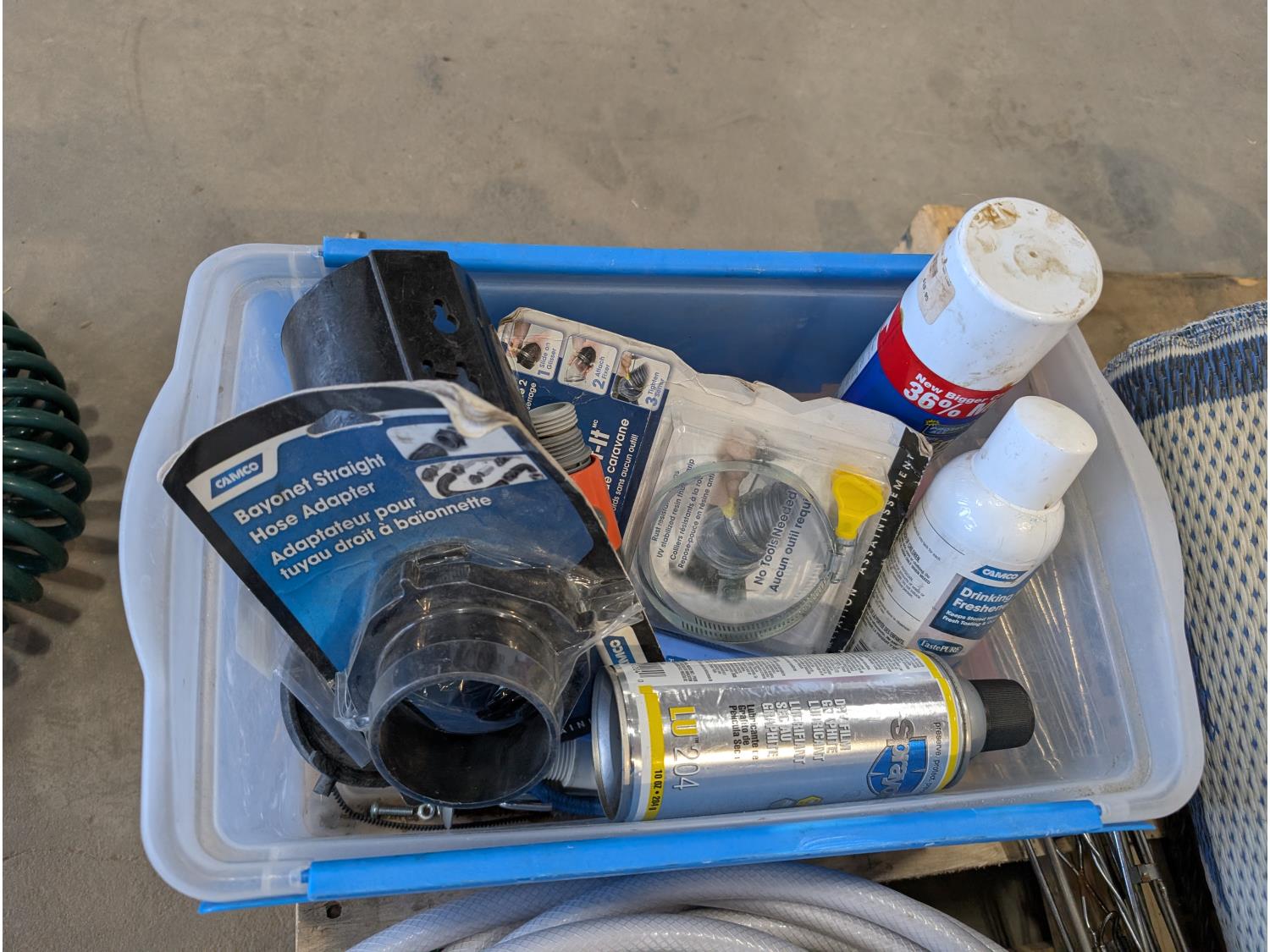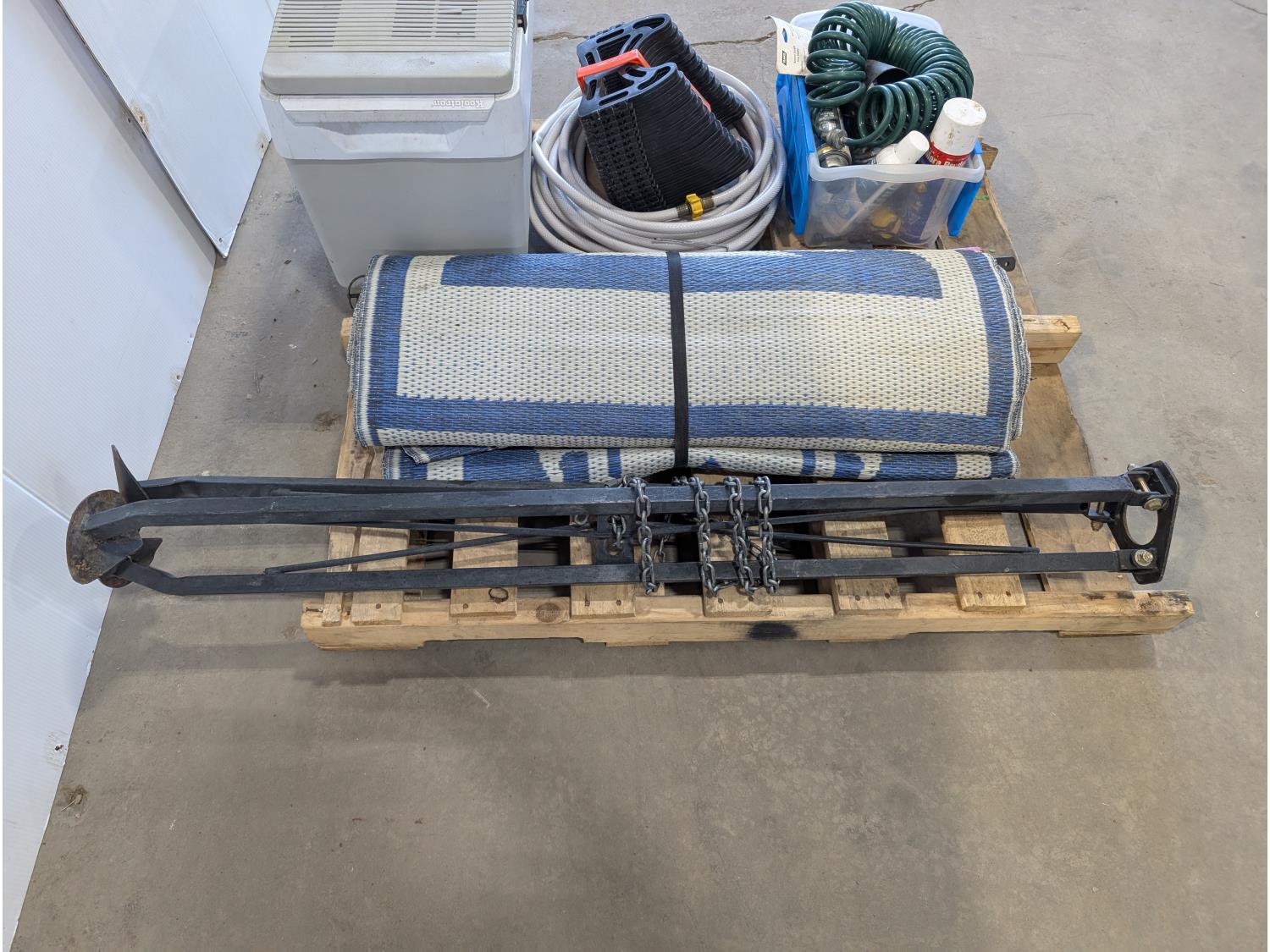 5TH wheel stabilizer, RV mat, weiner sticks, Koolatron electric cooler, hose