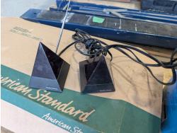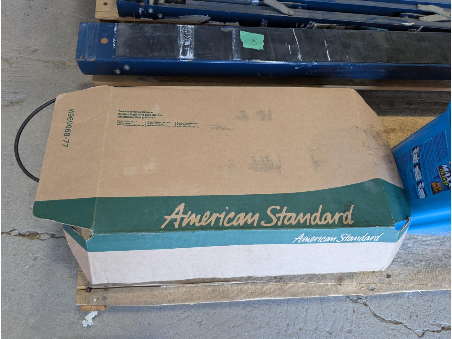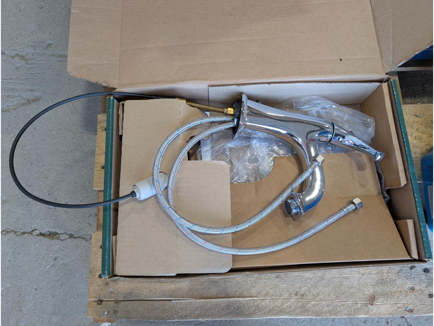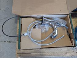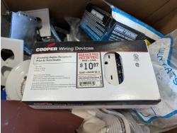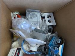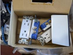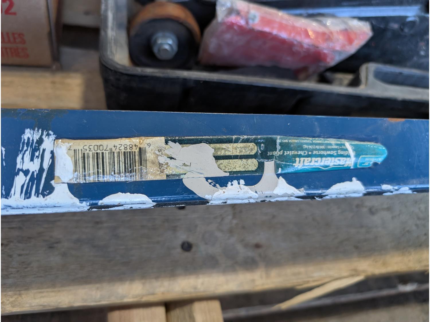 Faucet, (2) Mastercraft folding saw horses, Motomaster 2-1/4 ton hydraulic trolley jack, electrical supplies