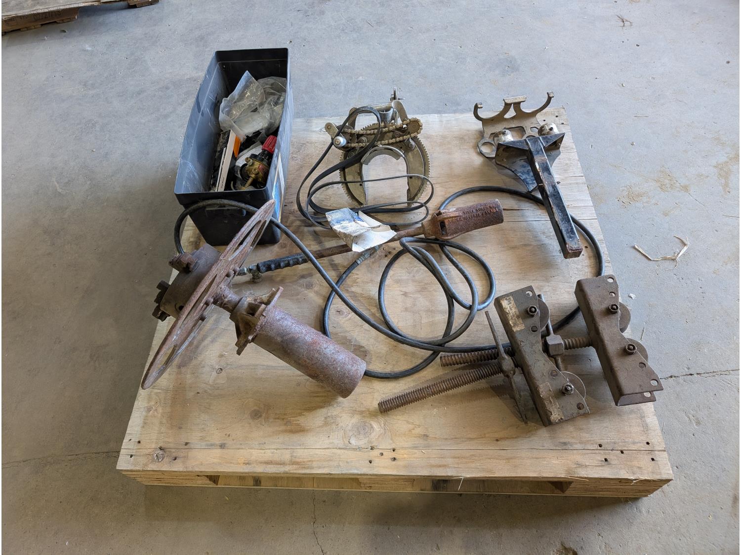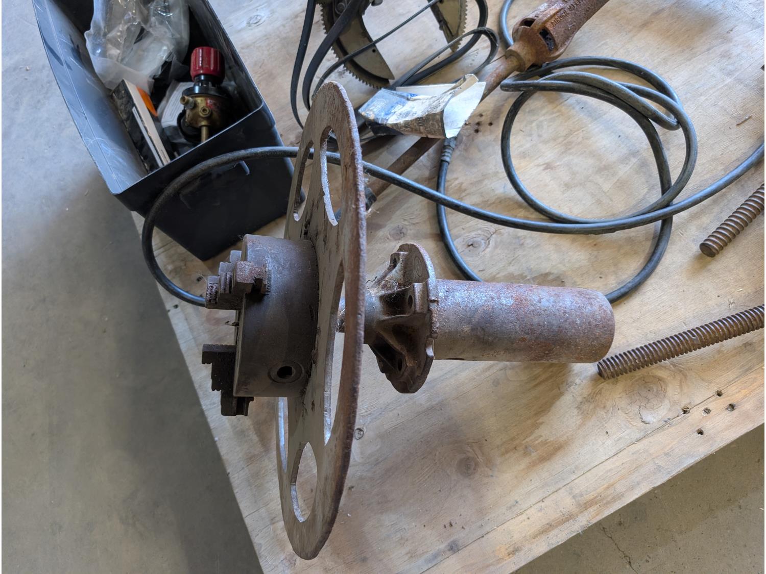 Pipe stand rollers, pipe beveler, lathe chuck