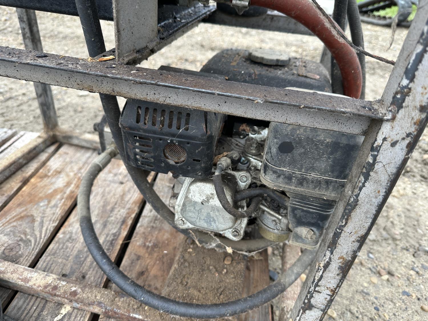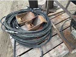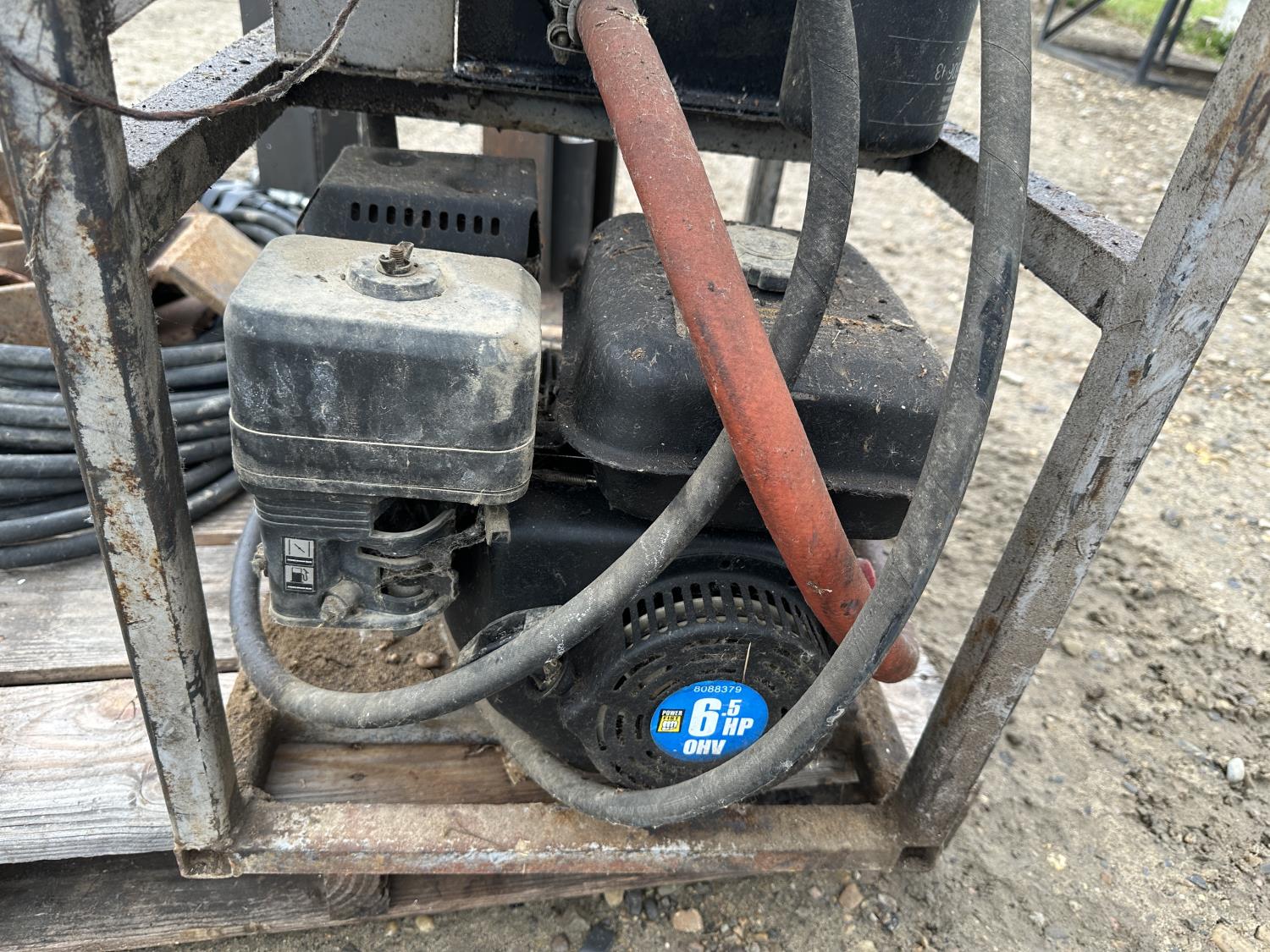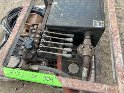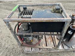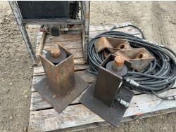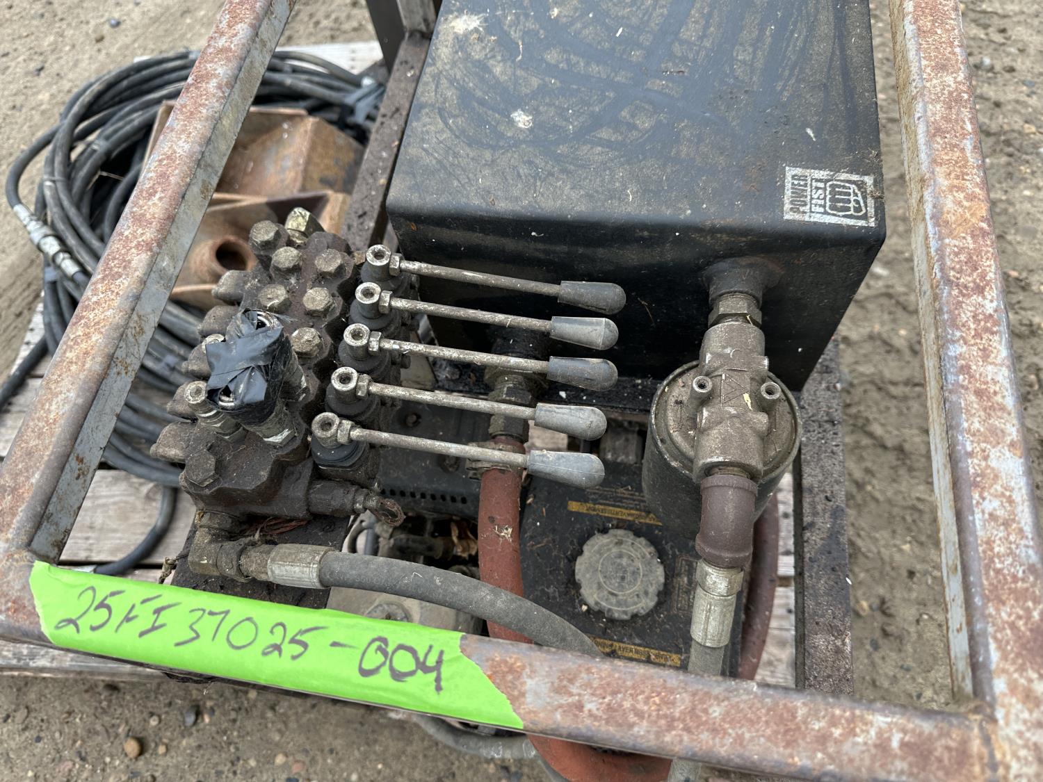Powerfist 6.5 HP gas motor over hydraulic pump, (2) 50 ft hydraulic hoses with quick connectors, (2) hydraulic jacks in welded cages, (4) hydraulic jack top plates
