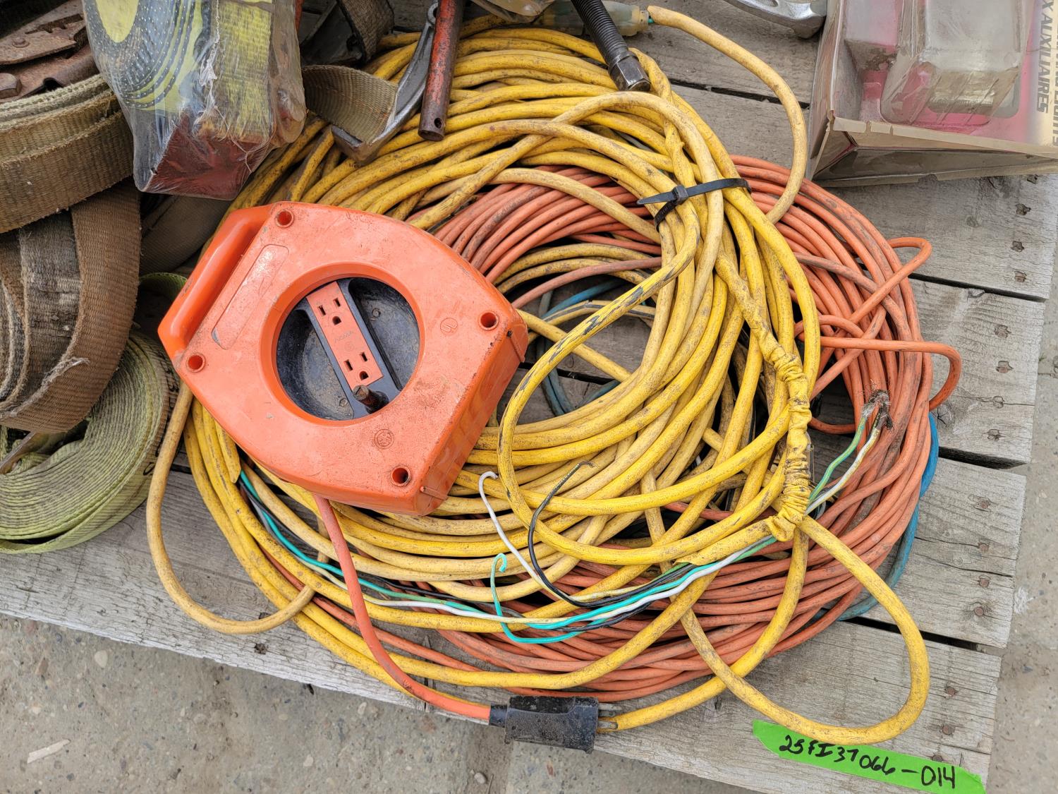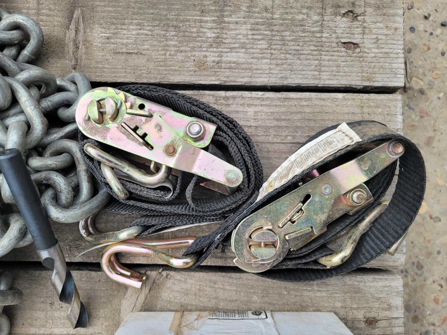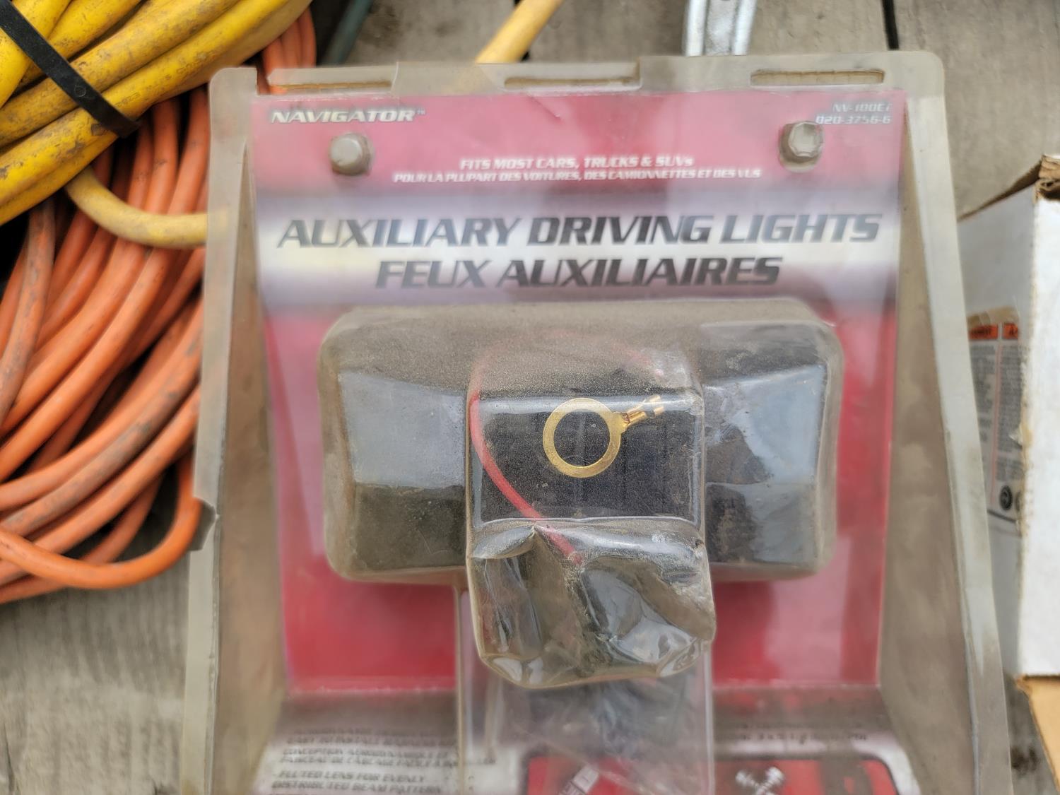 Extension cords, ratchet straps, auxiliary driving lights, chain