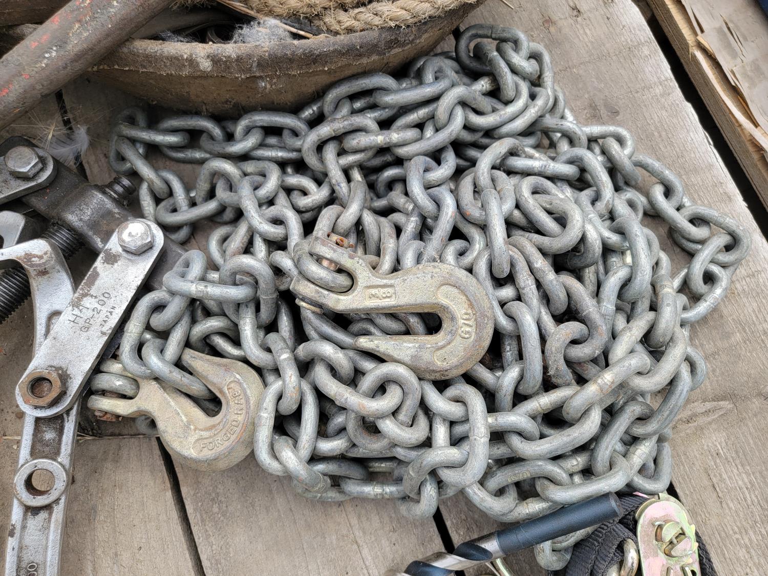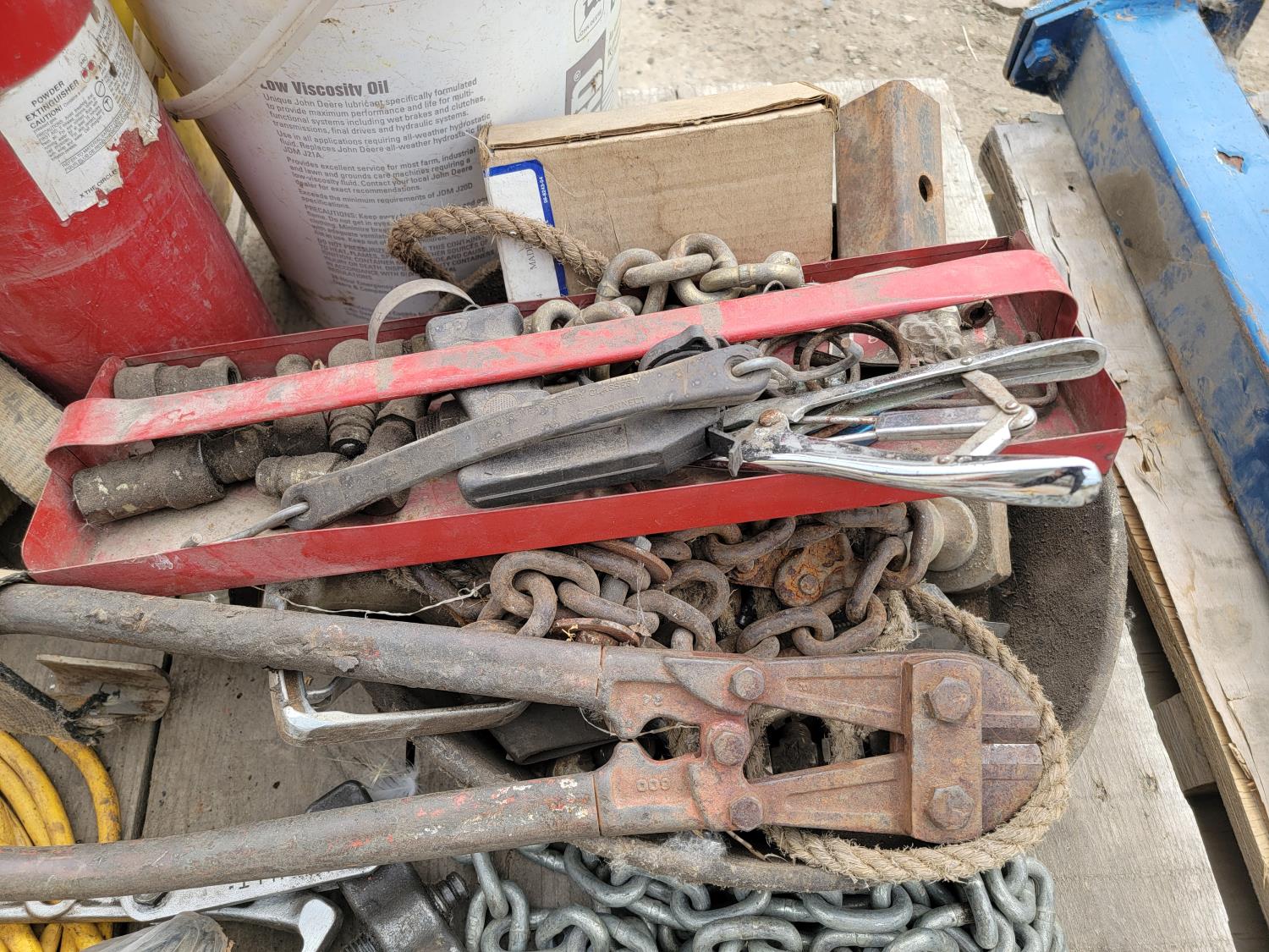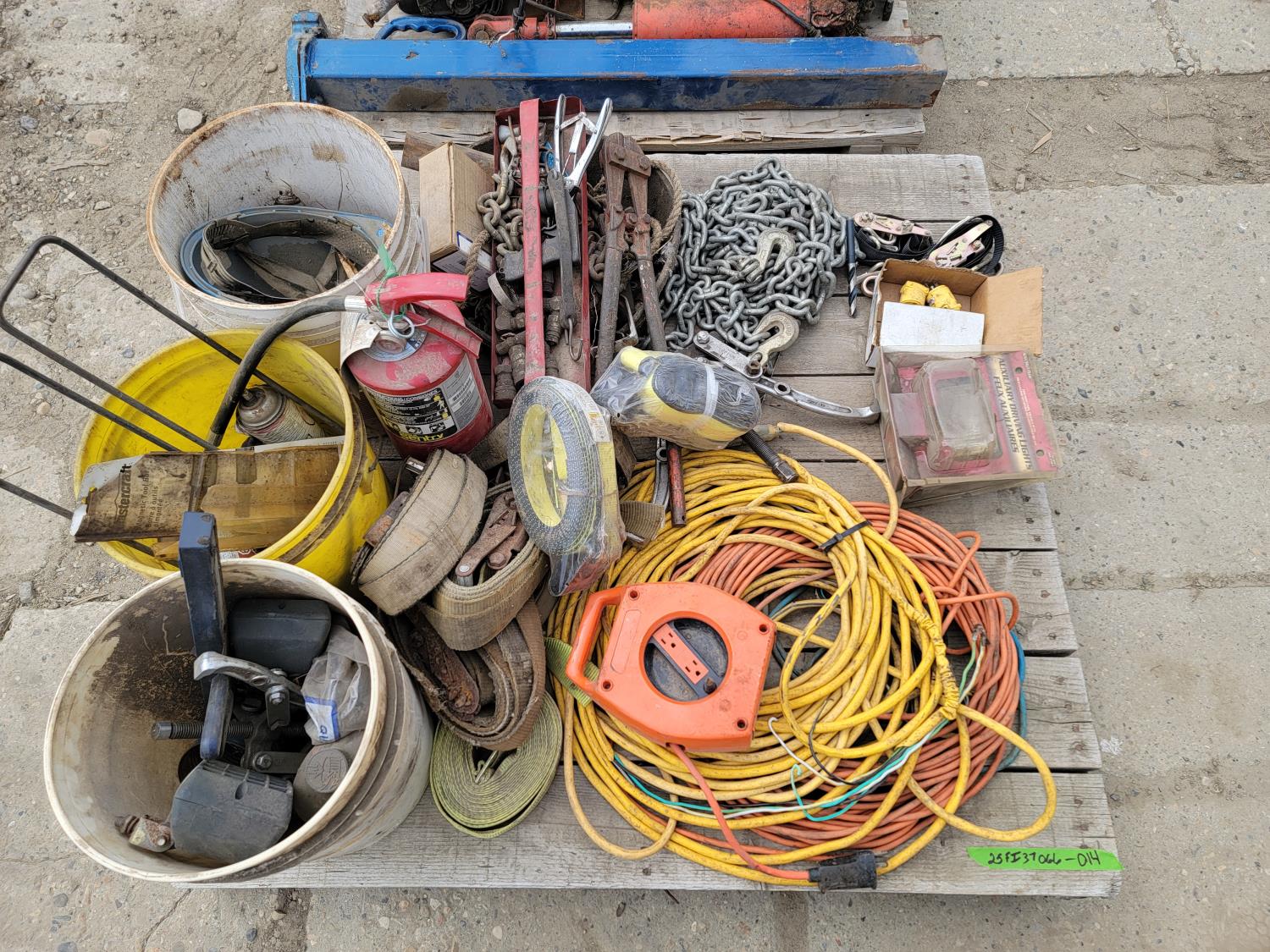 Extension cords, ratchet straps, auxiliary driving lights, chain