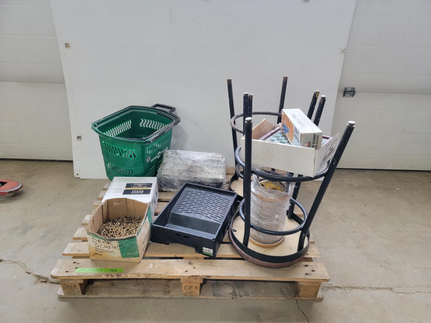 Deck screws, Epoxy resin, paint tray, sanding/grinding stones and wheels, router bits, chess board, foot air pump, (2) bar stools