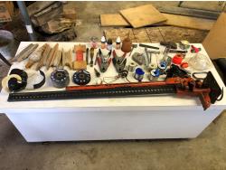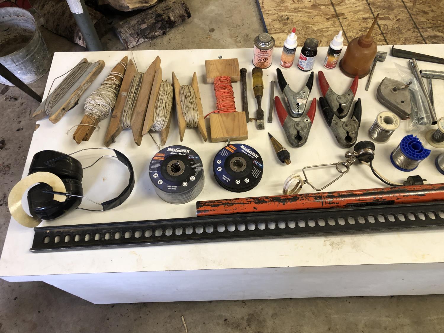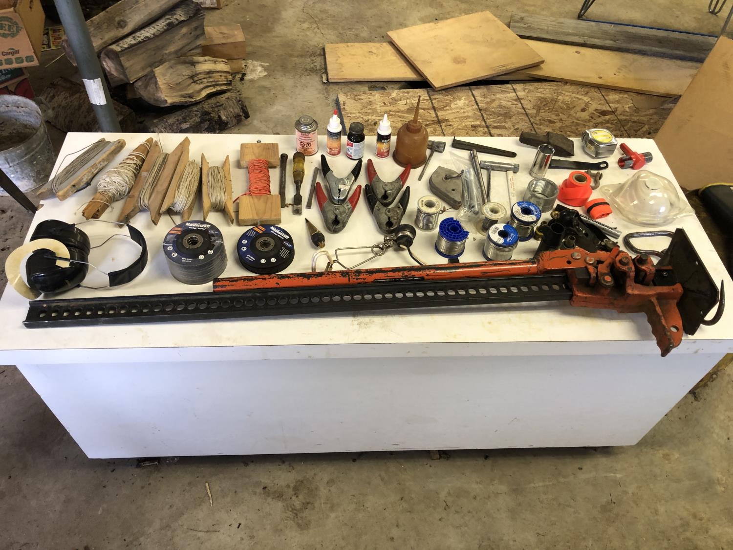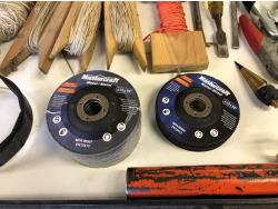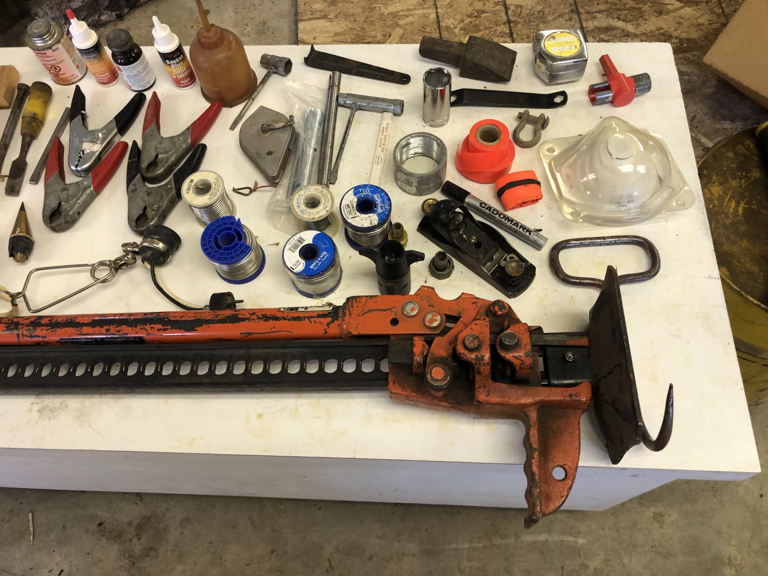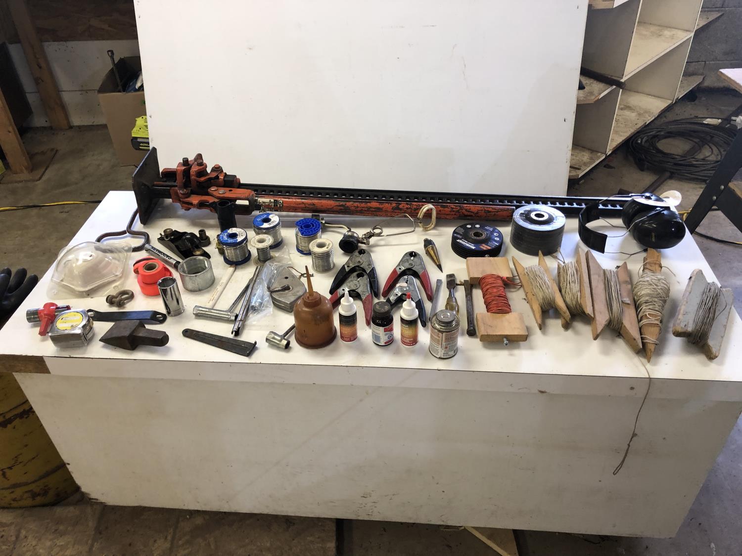 booster cable clamps, grinding wheels, solder, miscellaneous items