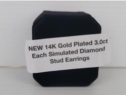 1704 Smartlife 14K Gold Plated 3.0 Ct Each Simulated Diamond Stud Earrings (Unused)