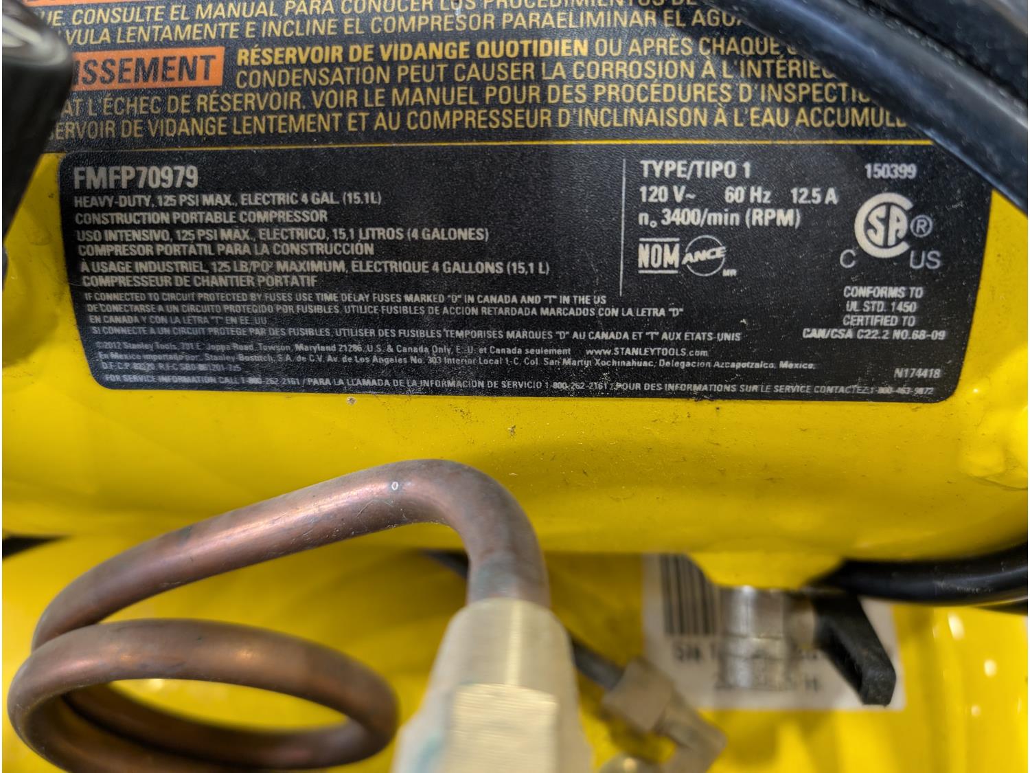 1188 Stanley FatMax 4 Gallon Air Compressor and Qty of Air Line