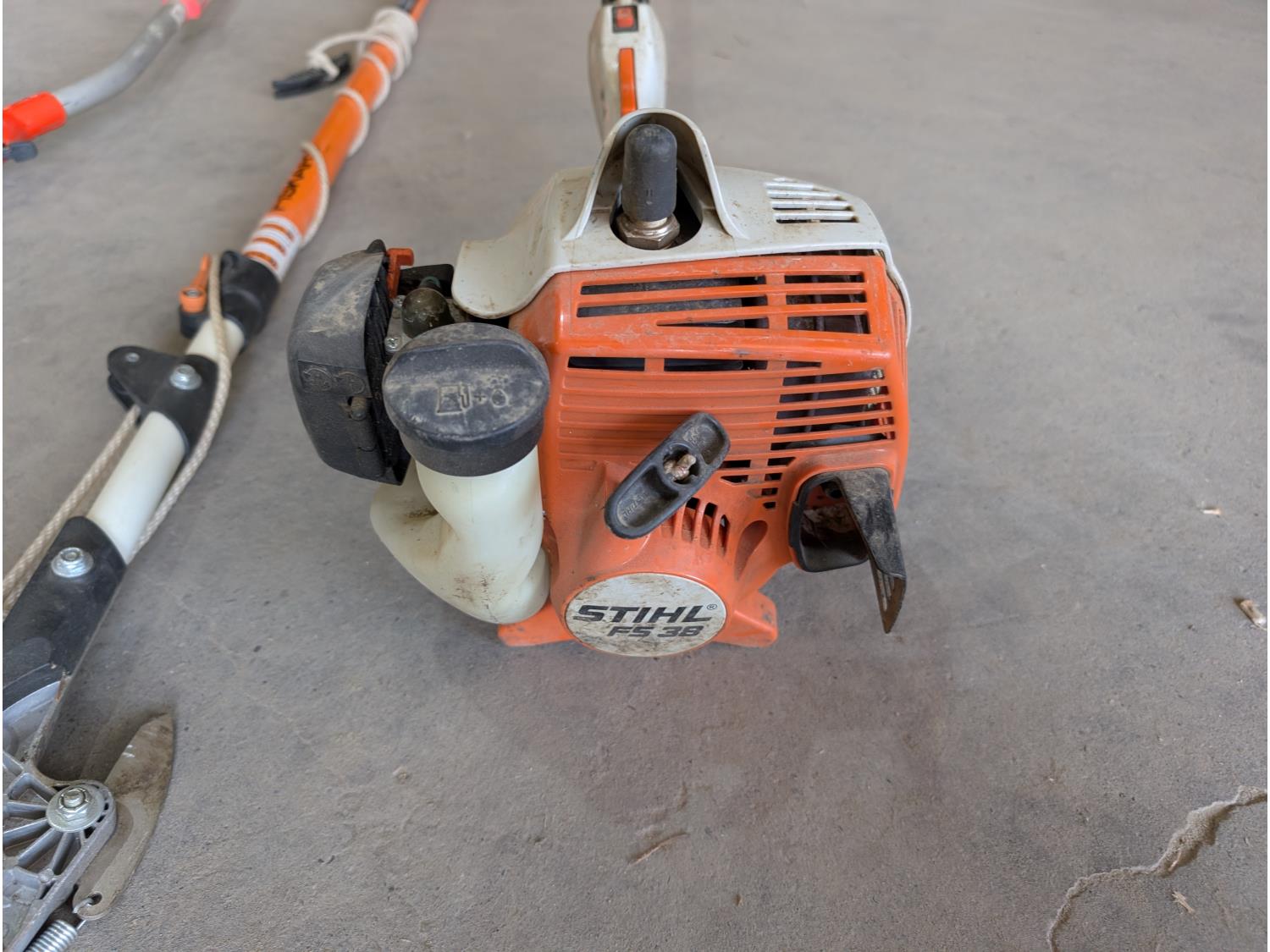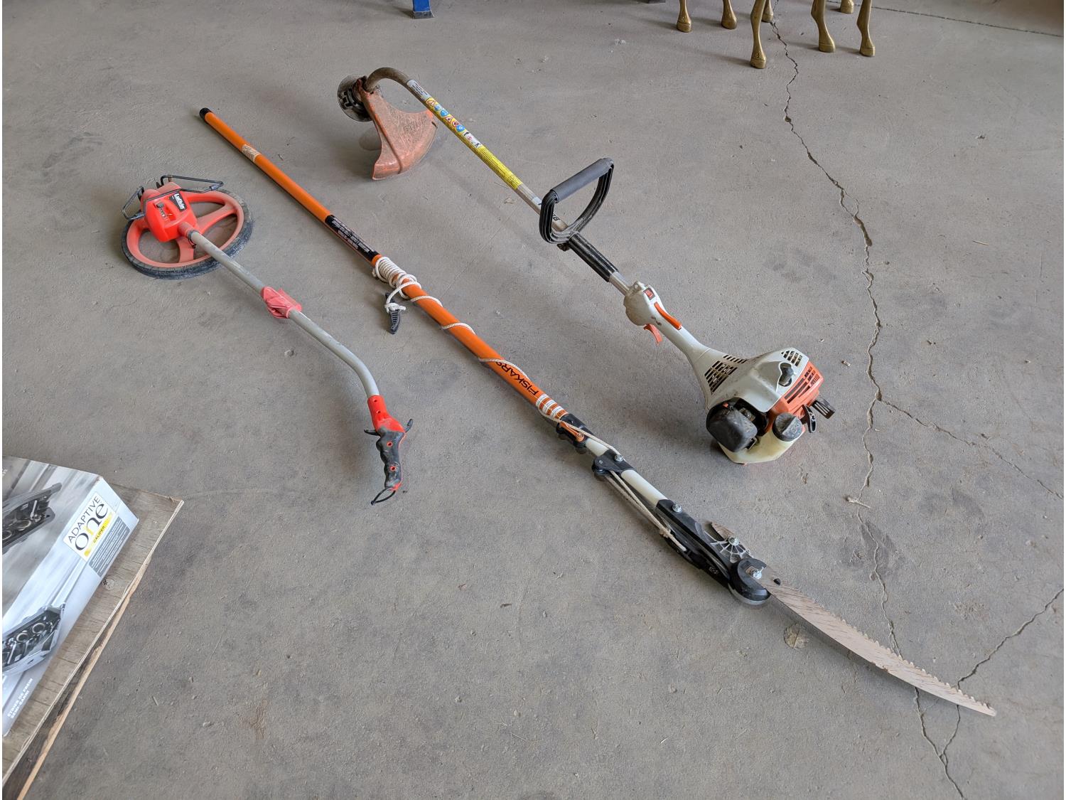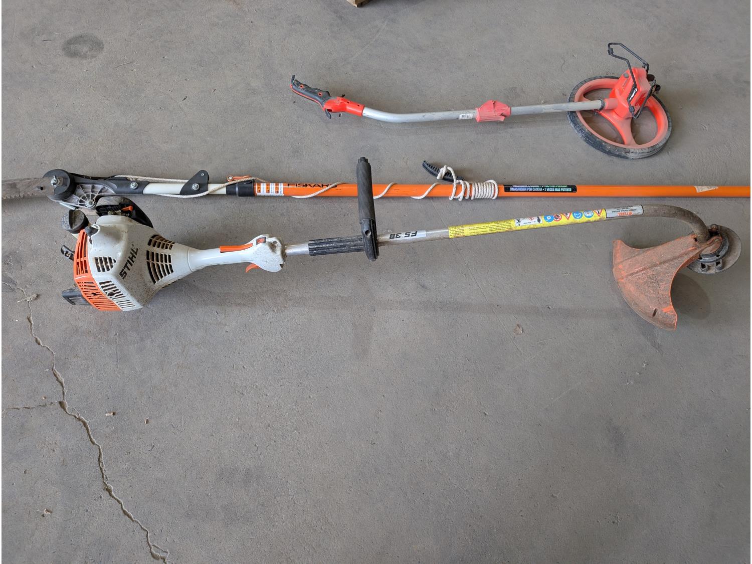 1632 Stihl FS38 Gas Weed Trimmer, Pole Saw and Lufkin Measuring Wheel