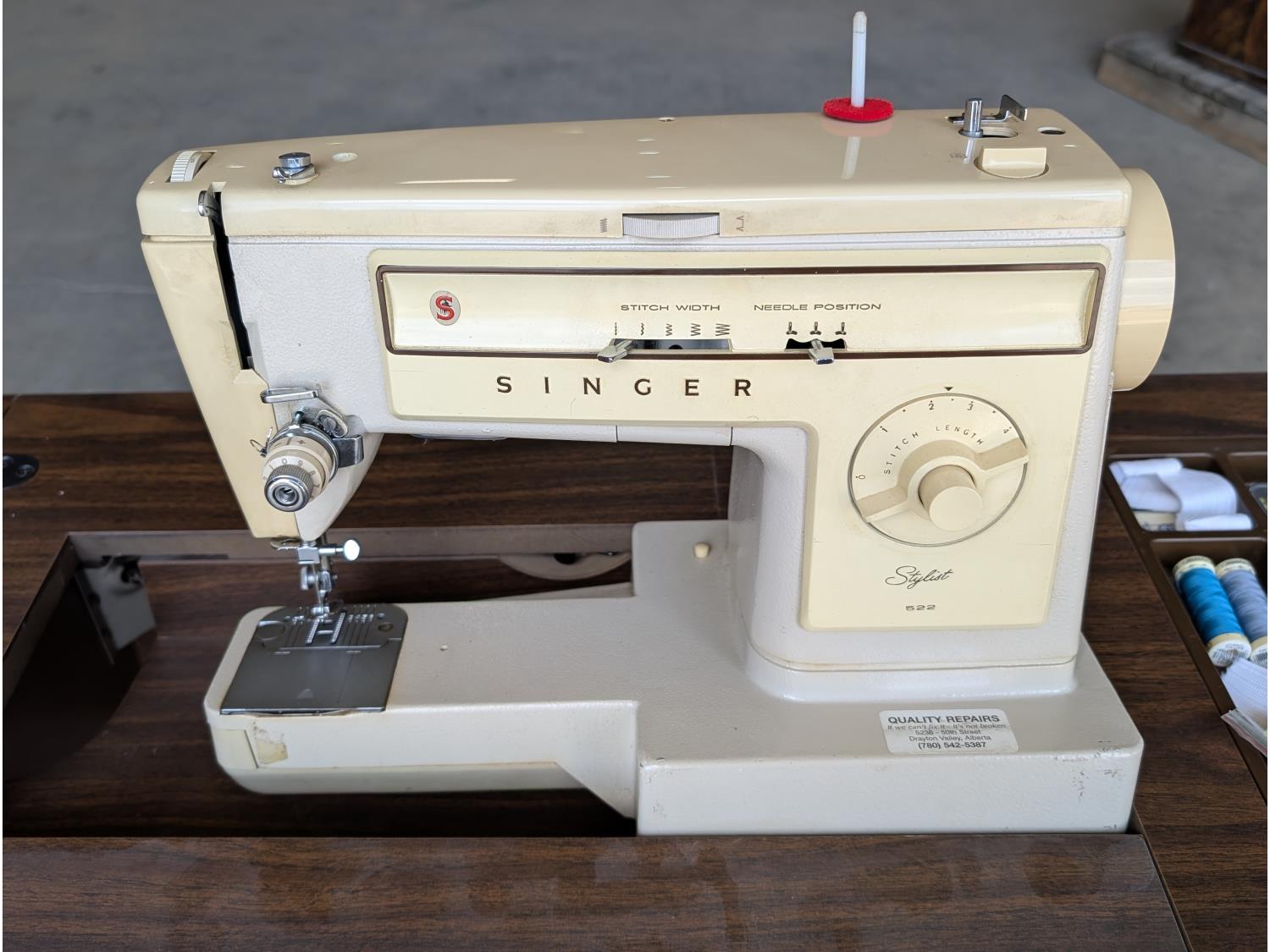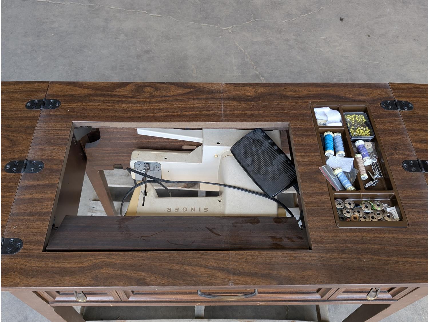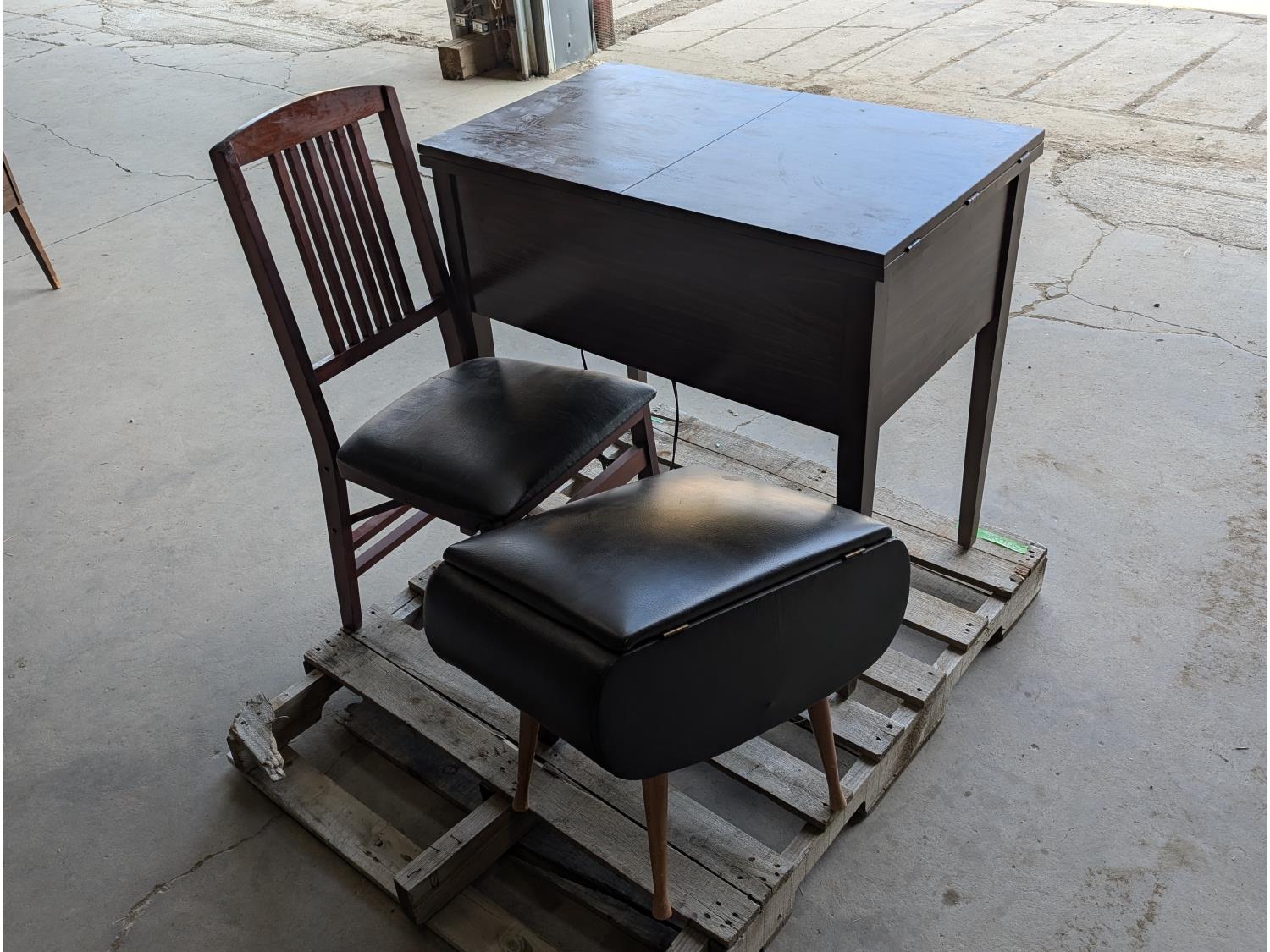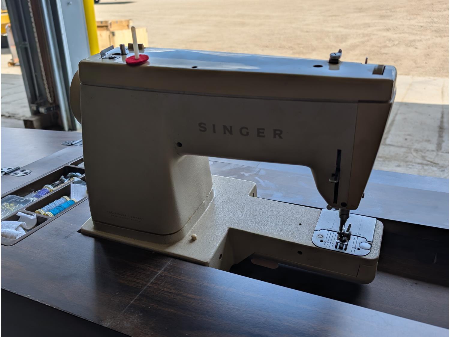 1570 Vintage Singer Sewing Machine, Chair and Storage Stool