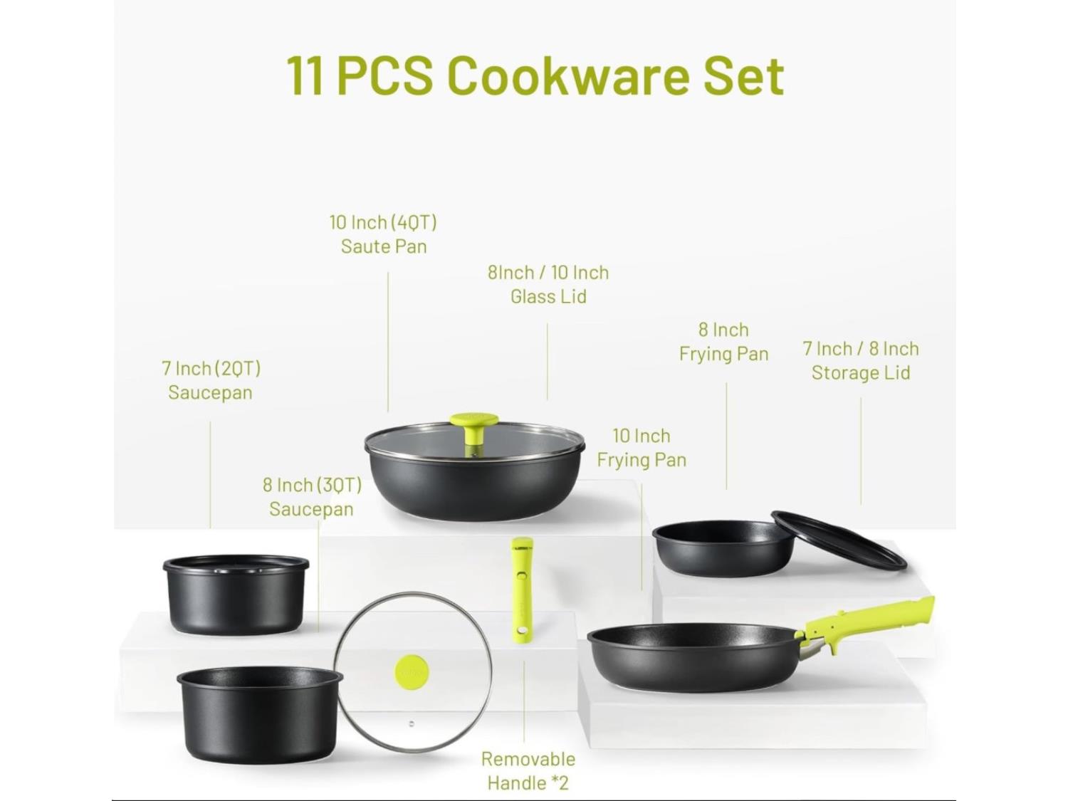 5200 Carote 11 Piece Nonstick Cookware Set with Detachable Handles