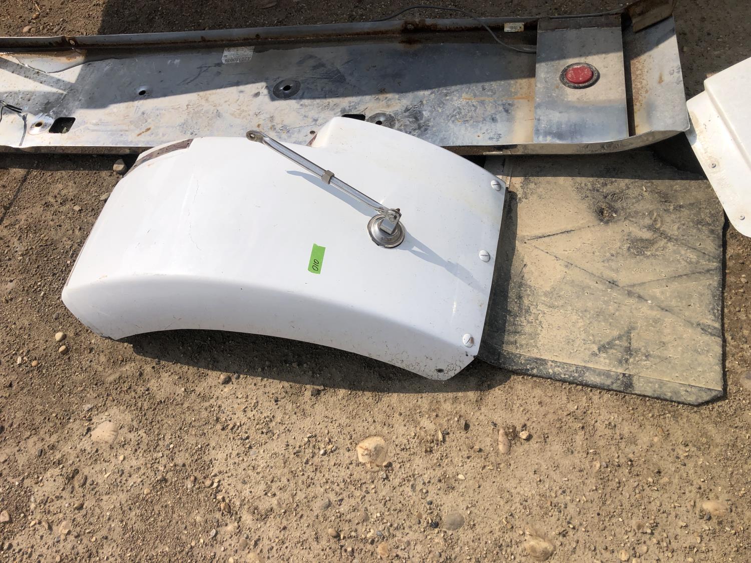 5568 (2) 36 Inch X 16 Inch Fiberglass Truck Fenders and 94 Inch X 18 Inch Chrome Bumper