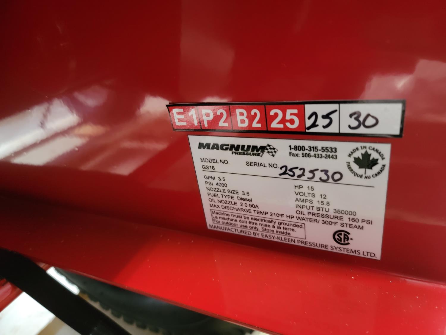 3.5 GPM at 4000 PSI, 15 HP, gasoline engine, electric start, 12 volt burner, oil/diesel fired burned/thermostat, schedule 80 coil with stainless steel housing, fully welded, powder coated frame, 10 gallon poly fuel tank, 30' hose and wand