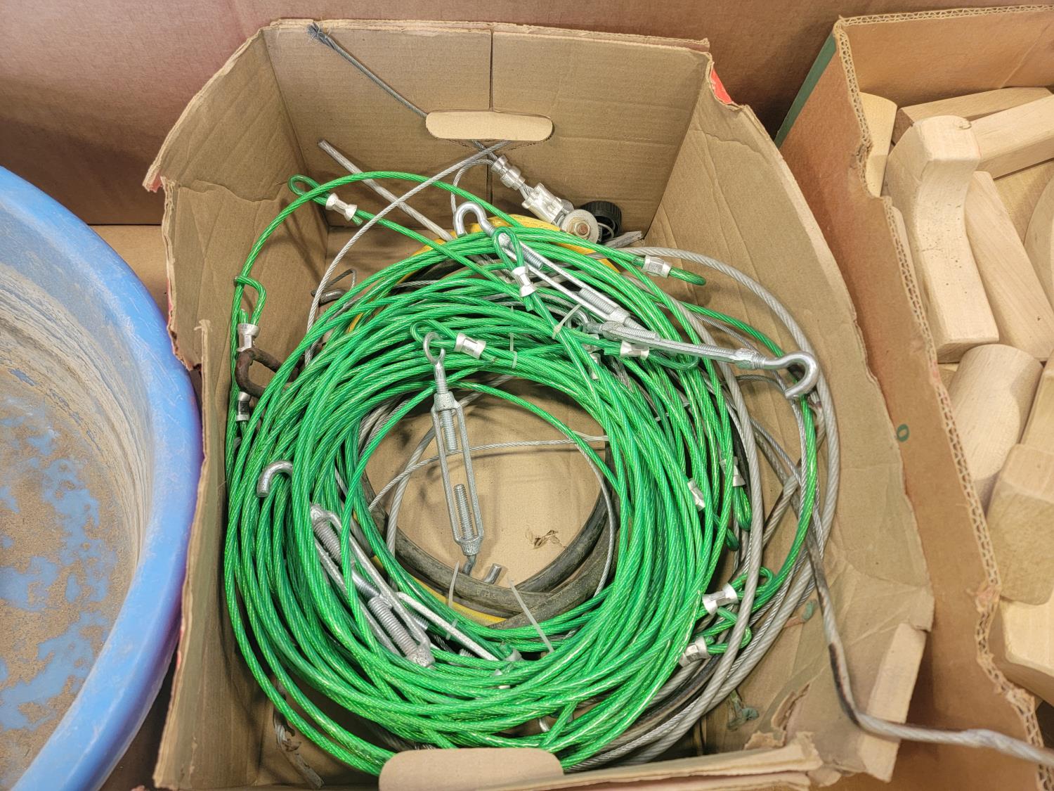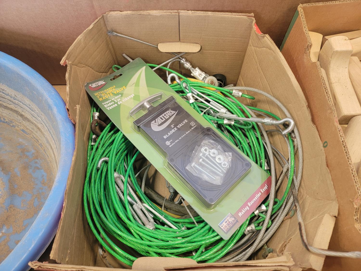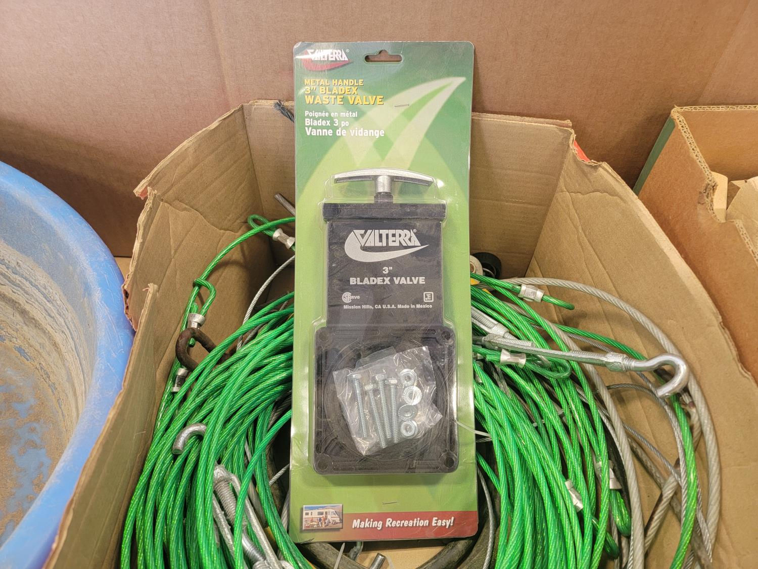 Wind sock, various lengths of coated aircraft cables, 3 inch Bladex waste valve
