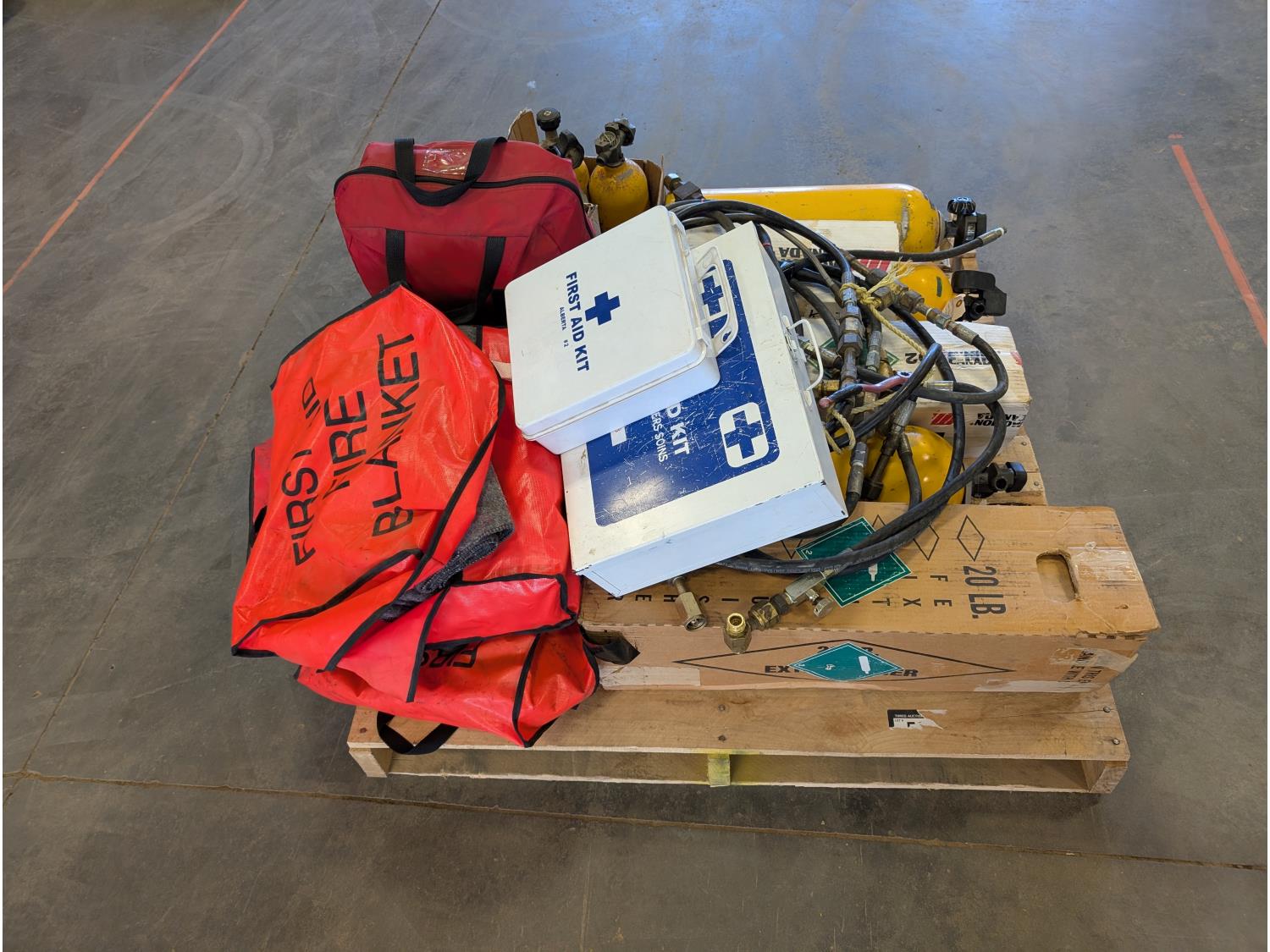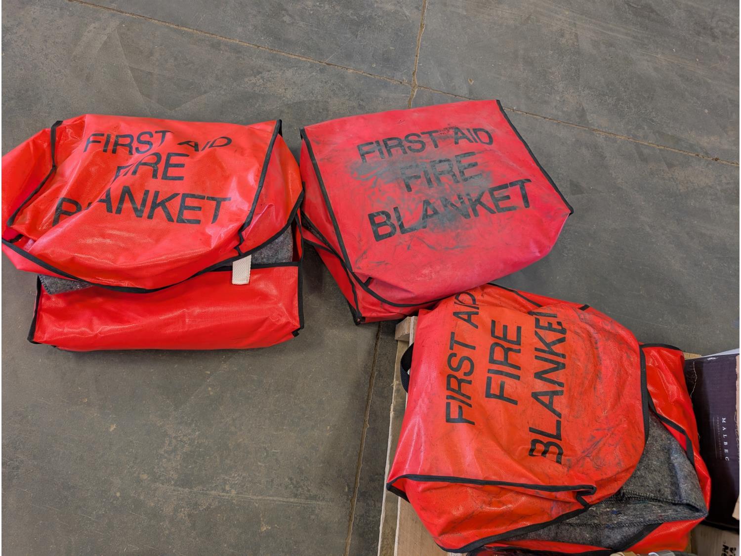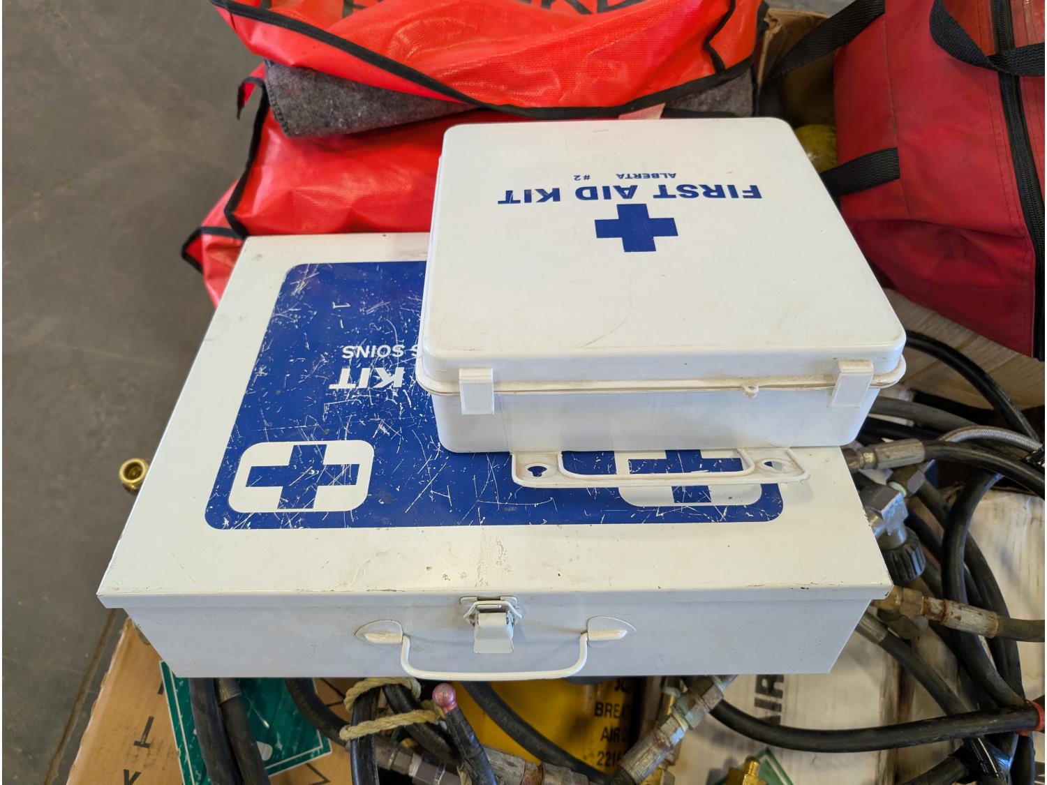 First aid kits, fire blankets