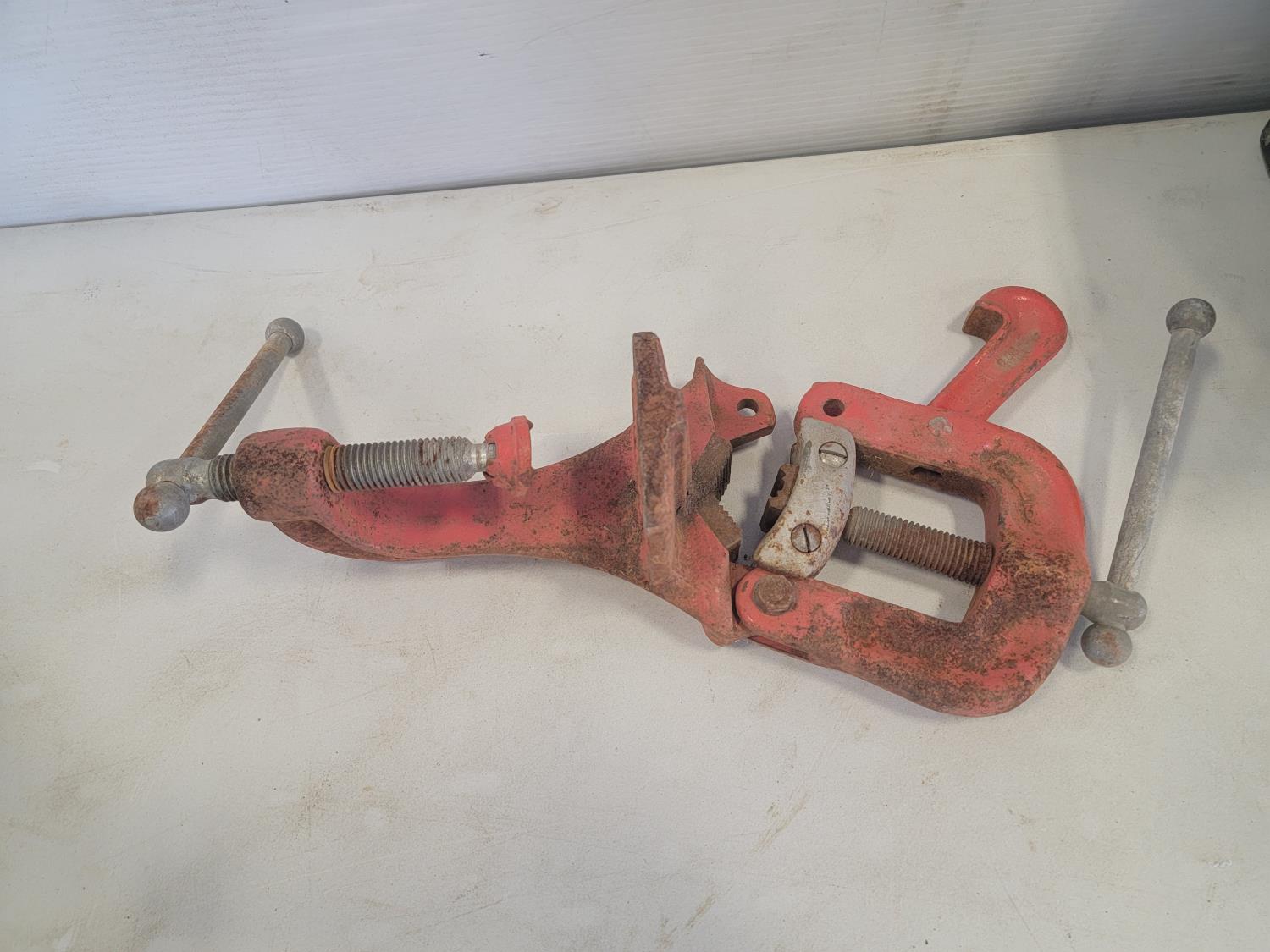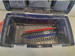 Tool box, Dewalt 1/2 inch drill, Makita 1/2 inch electric impact, miscellaneous tank truck fittings, Ridgid pipe vise