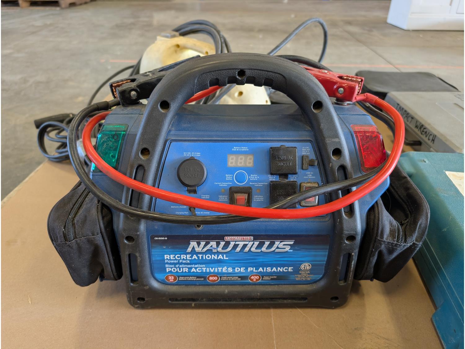Motomaster Nautilus power pack, Makita 9.6V, air impact, (2) Rae Systems piston hand pump H2S kits, electric pressure washer