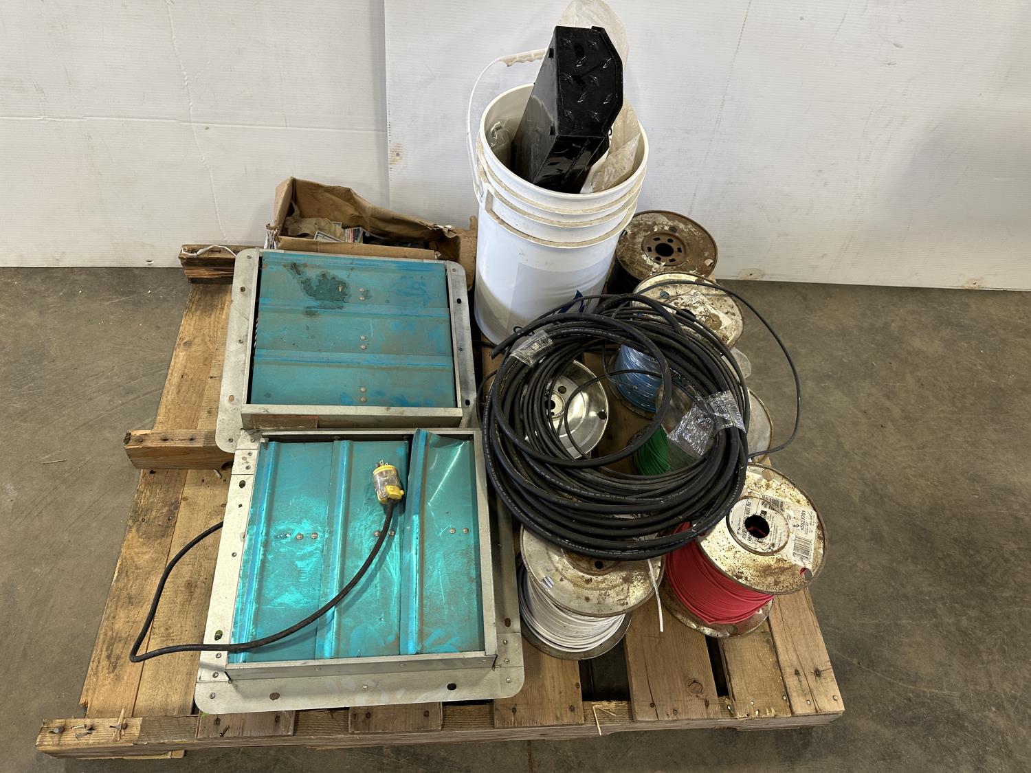 5422 Qty of Wire, (2) Exhaust Fans, Galvanized Bolts and Hardware