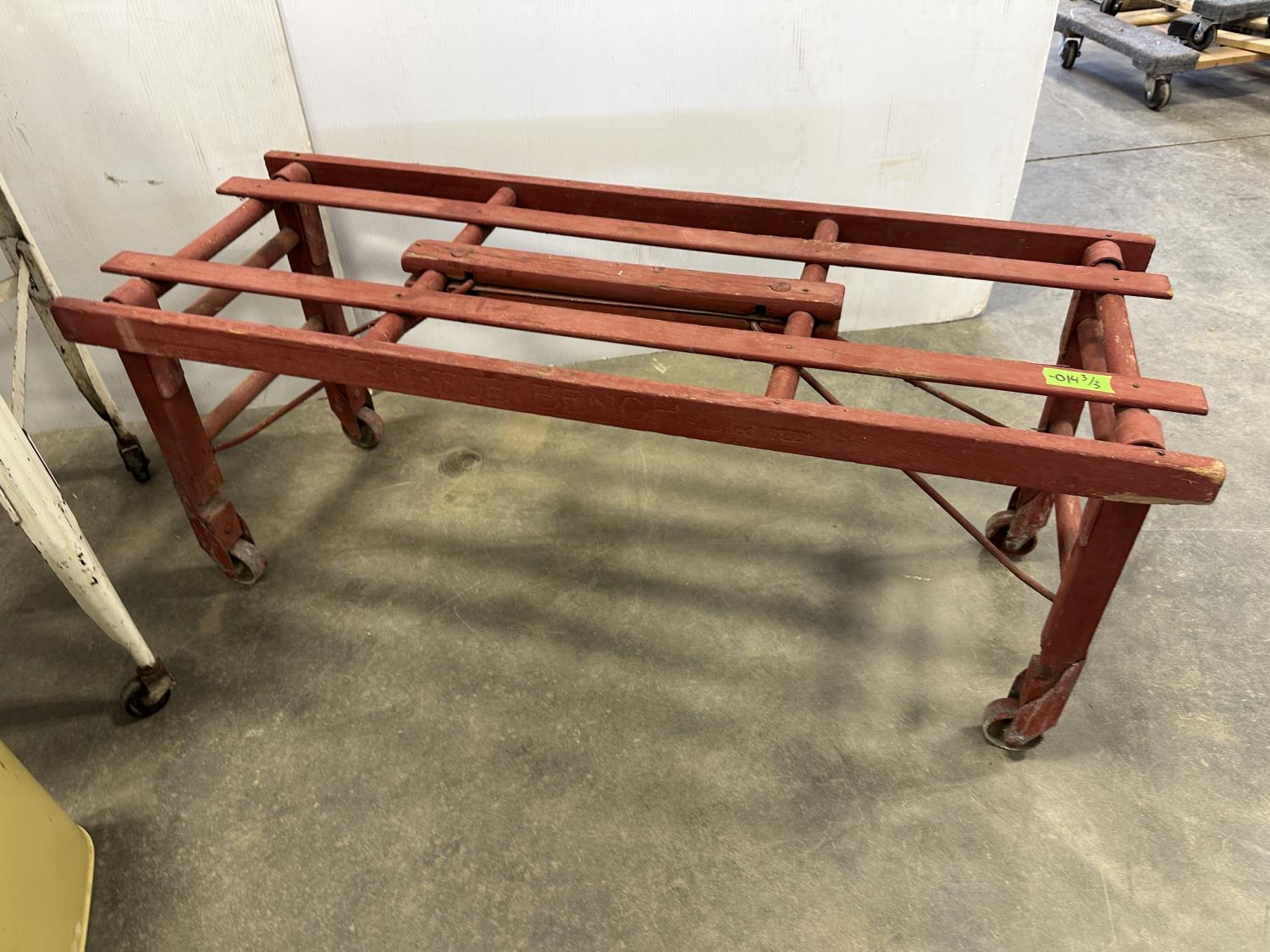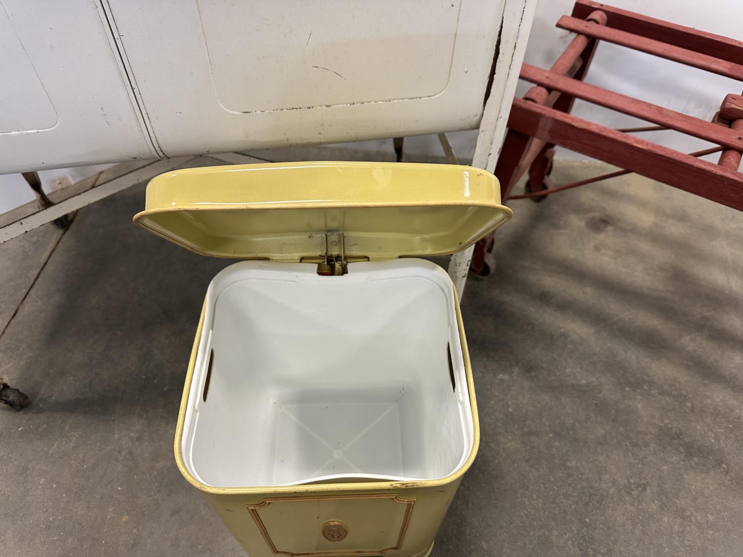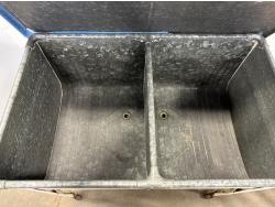 5347 Vintage Galvanized Double Wash Basin, Folding Rolling Bench and Trash Can
