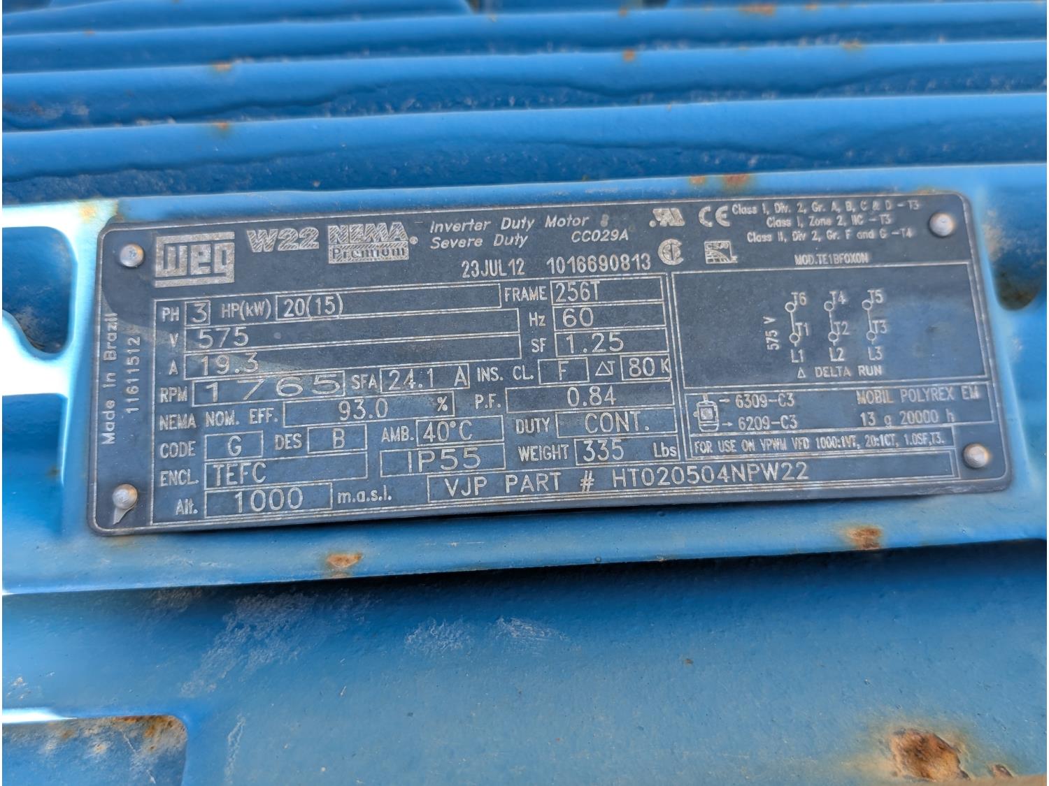 Baldor 20 HP 575 3 phase electric motor