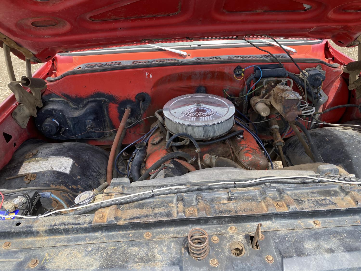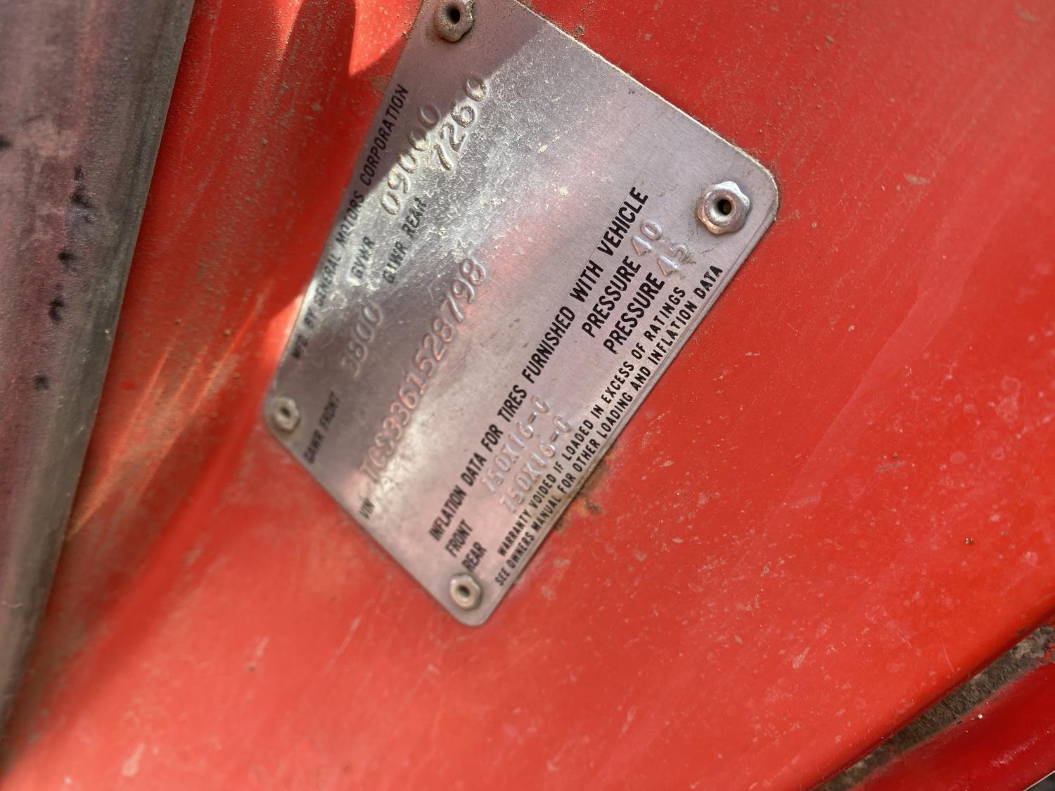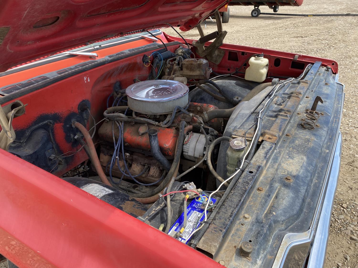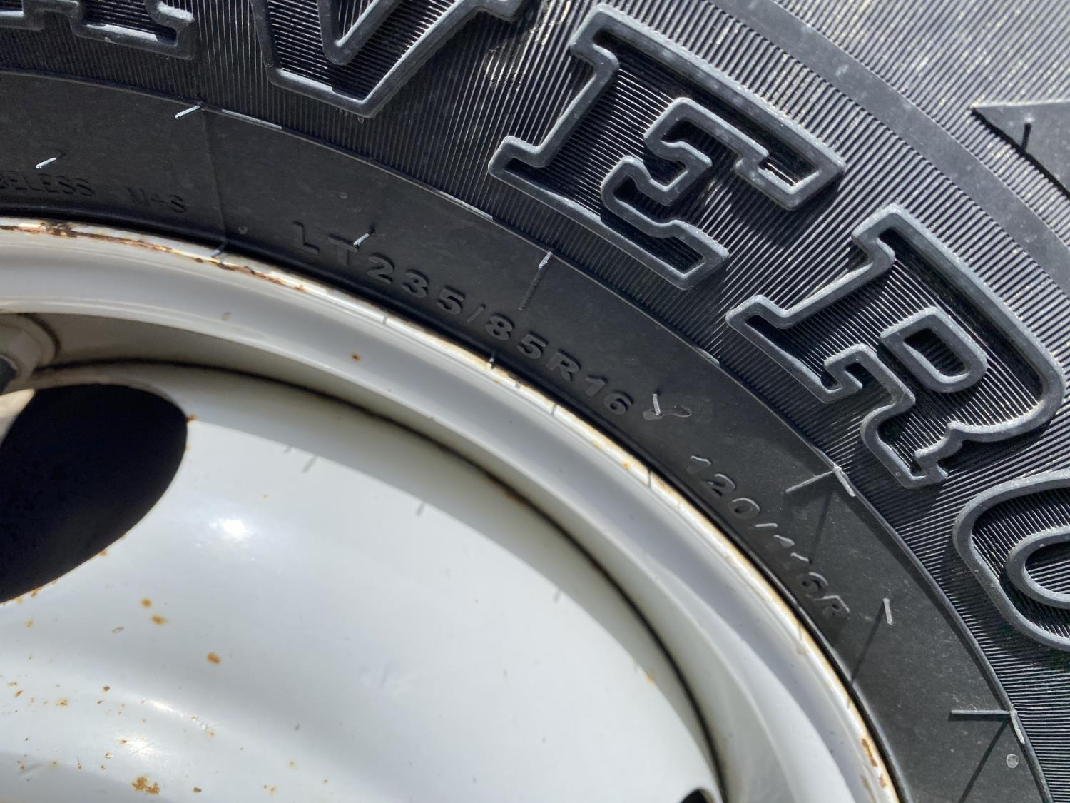350 cu in, V8, 4 speed manual transmission, 126 inch long deck, 86 in wide deck, 235/85R16 tires